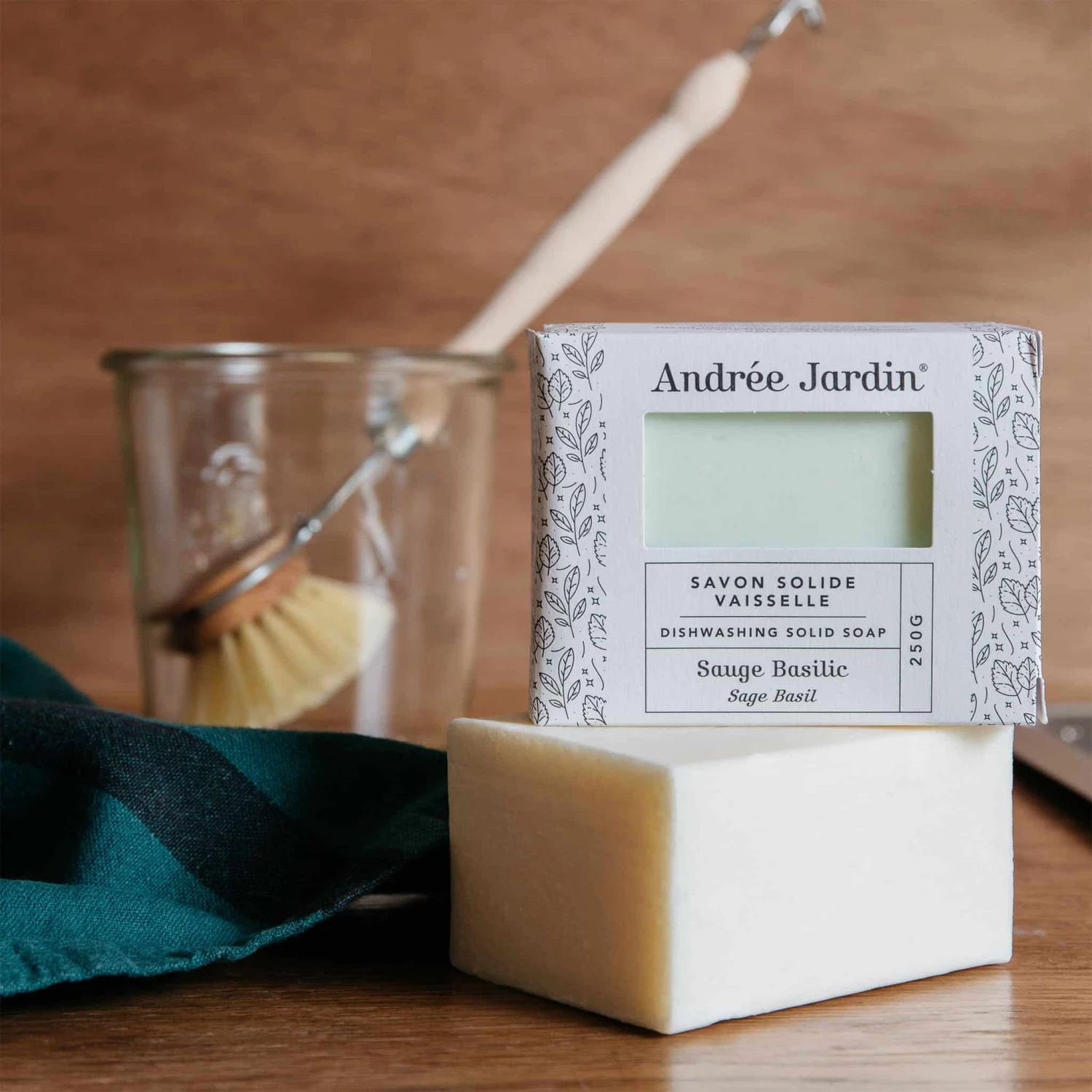Andree Jardin’s sage-basil solid dishwashing soap is the new way to wash up, without plastic bottles of soap. Simply rub your wet washing up brush over the soap to create a lather that cleans your plates in seconds. Keep the square soap next to the sink, and you’ll never buy a squeezy plastic bottle again.