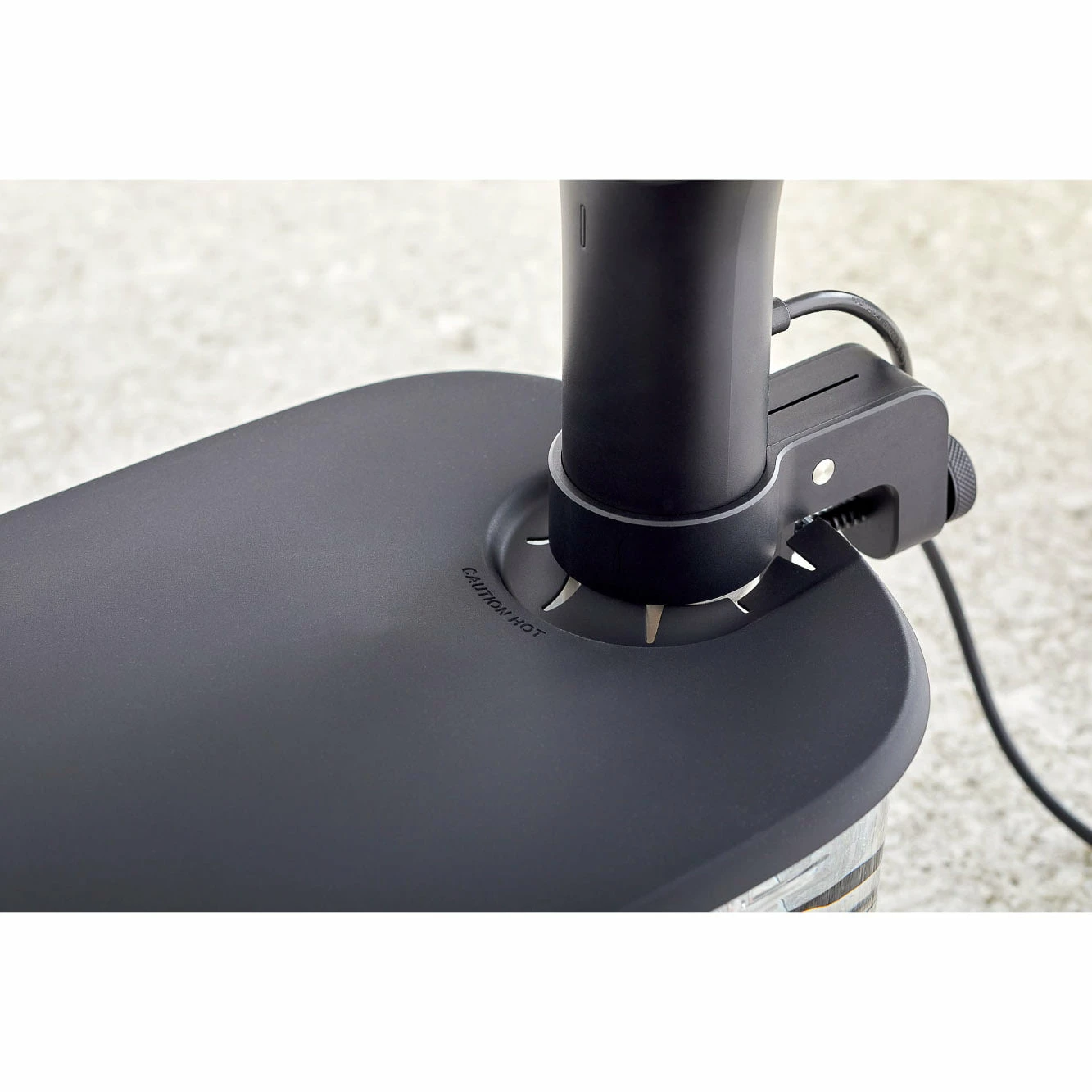 The sous vide container is designed with curved edges. This helps water circulate more efficiently than in a square container.