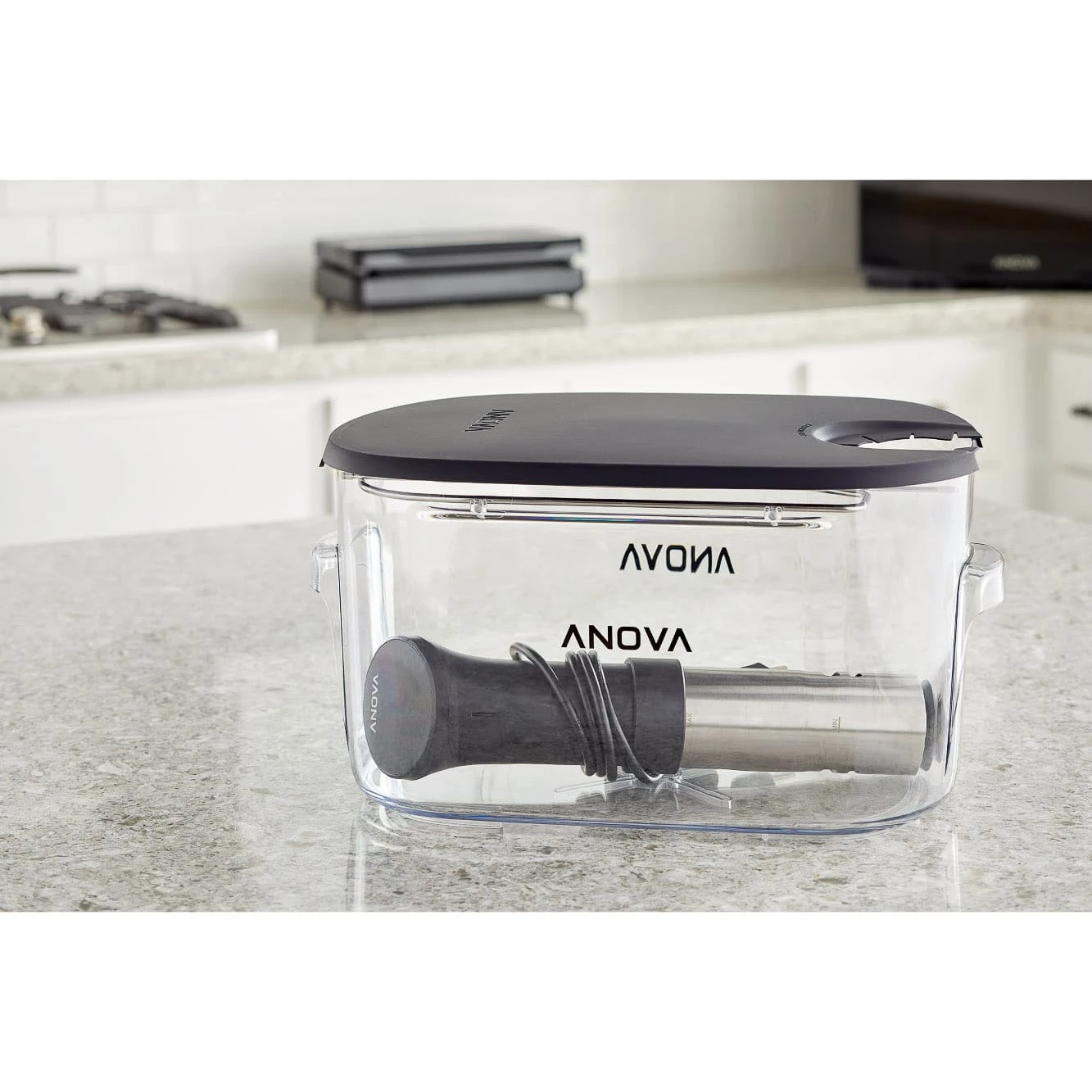 Use Anova’s sous vide container to hold the Anova precision cookers while you cook your food. With clear sides and a lid, it is the perfect container for sous vide cooking – you can see the food as it cooks, and the 100% silicone lid provides a tight fit.