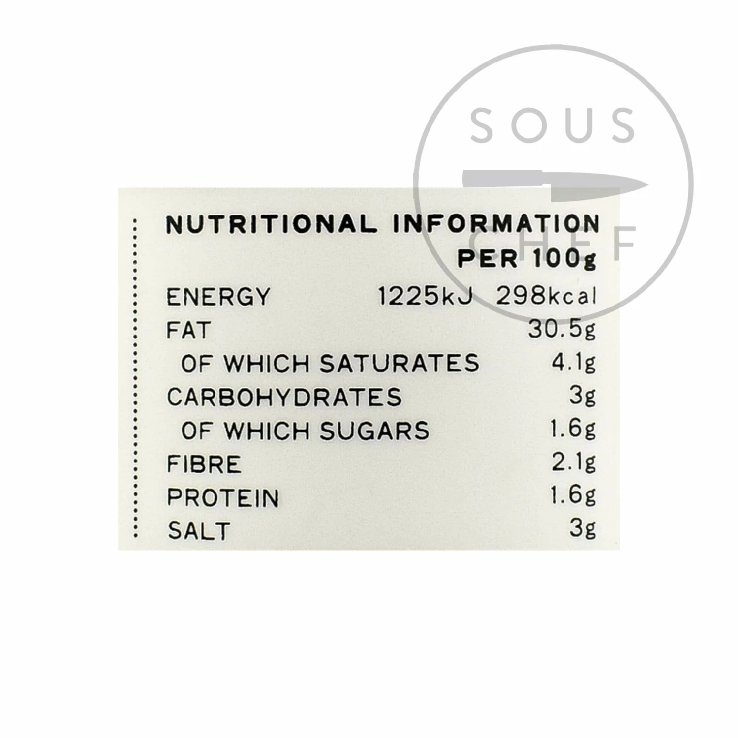 Ingredients: sunflower oil, coriander (31%), water, parsley (9%), salt, dried jalapeno peppers, garlic puree, cloves, basil, cardamom, cumin, sugar, acidity regulator: citric acid.