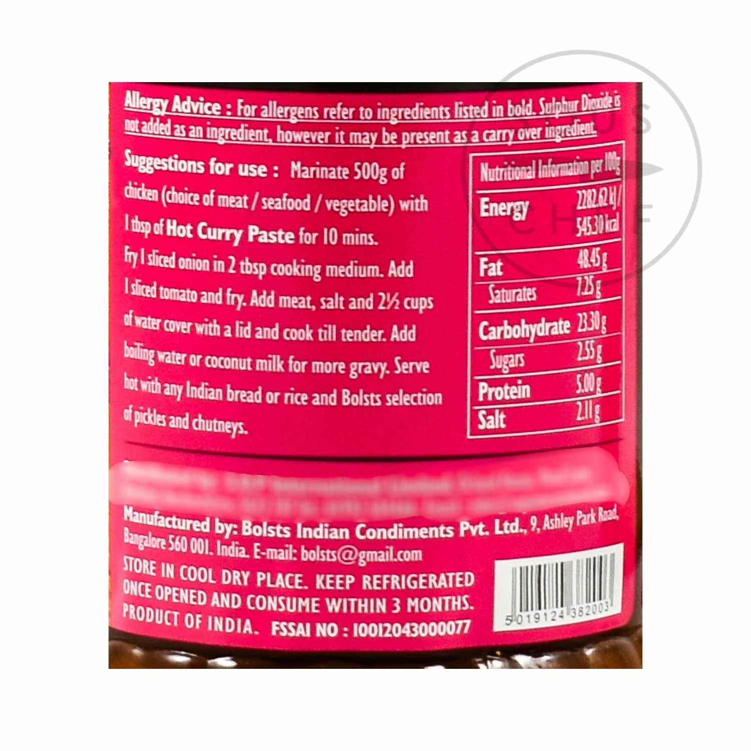 Bolst’s Indian Condiments is a family-owned company started in 1932, in Bangalore. Bolst’s products were first created for Anglo-Indian tastes, and they popularised the idea of a pre-mixed curry powder with their spice blends of varying heat.Â