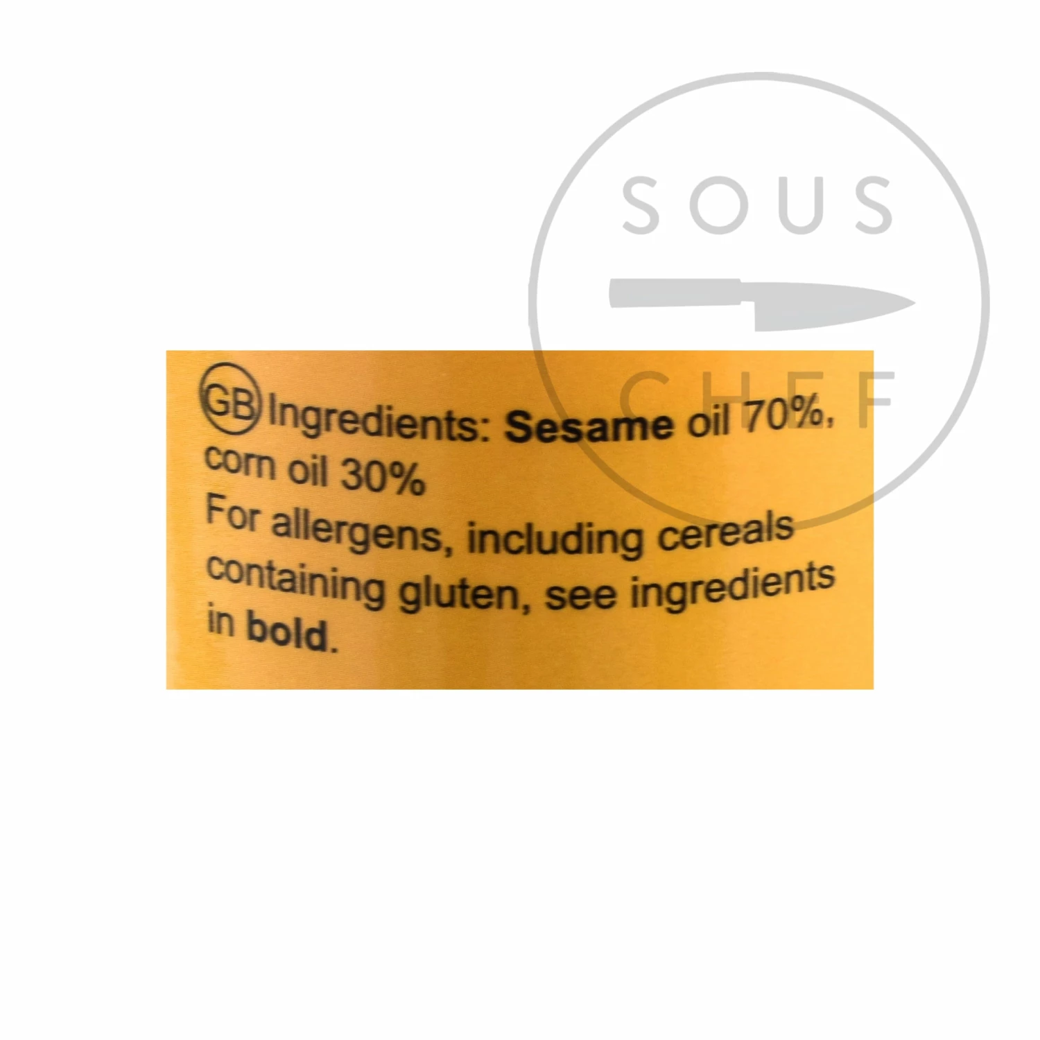 Ingredients: sesame oil 70%, corn oil 30%. Allergens are listed in bold.