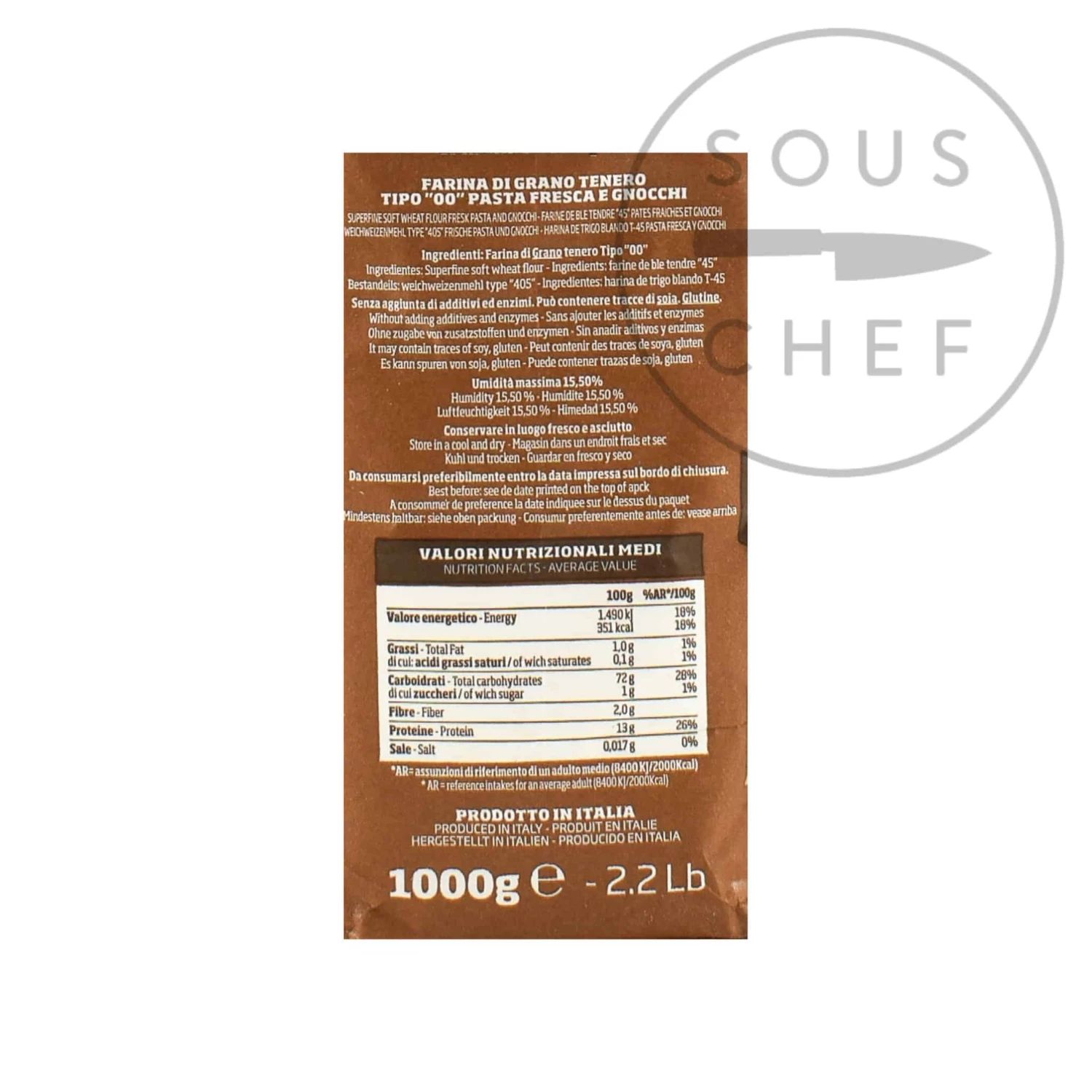 Caputo fresh pasta and gnocchi flour is a strong gluten, high protein flour for making elastic doughs for homemade spaghetti, tagliatelle and pappardelle. This high-starch 00 flour produces a dough that is easy to roll by hand or using your pasta machine.