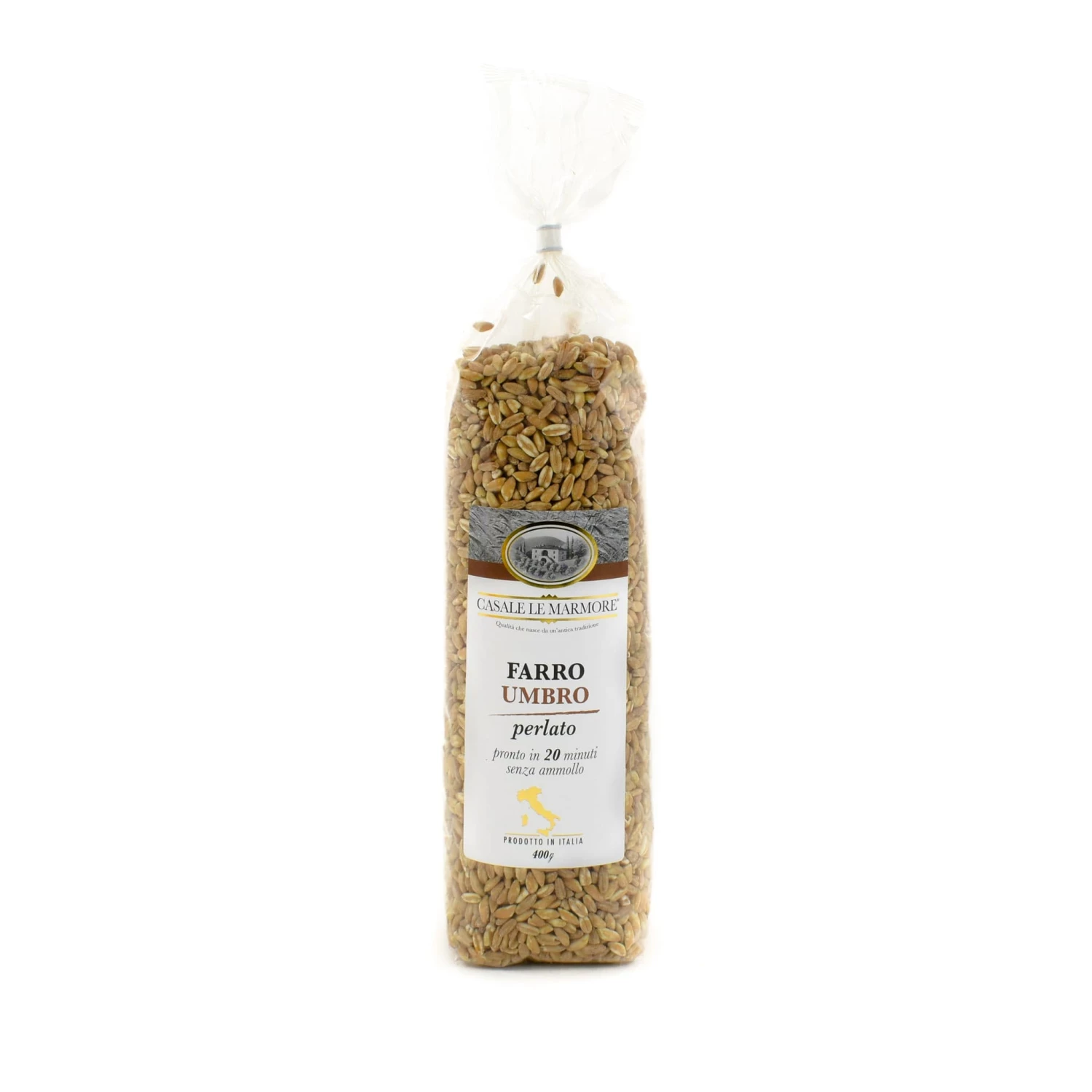 Casale Le Marmore’s farro is pearled, which means the outer husk has been removed. Also known as spelt in English, it is the Trticum dicoccum grain, which has been cultivated in Umbria for hundreds of years, and is one of the most valuable products of central Italy.