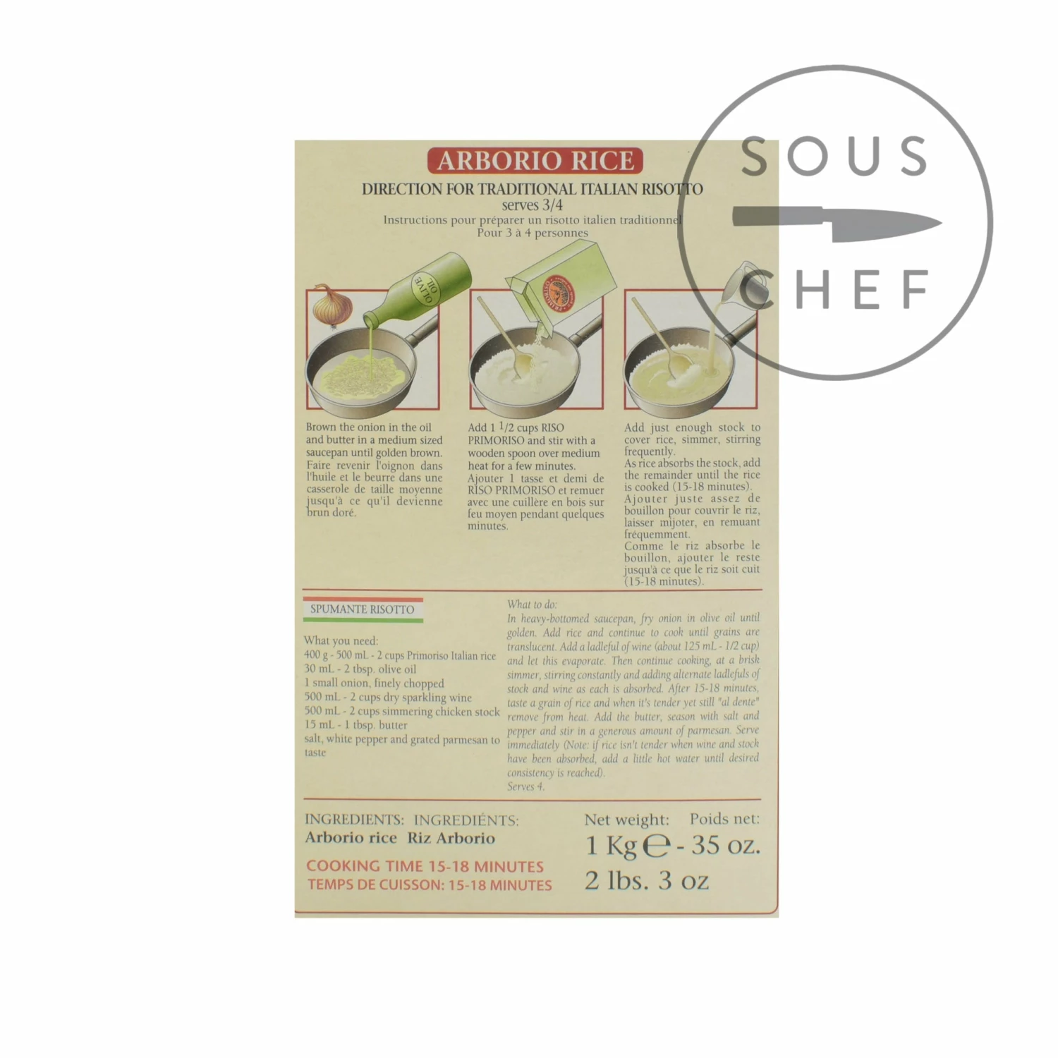 This Italian arborio risotto rice is a great choice for risottos because the kernels are high in starch which creates a creamy, smooth texture when cooked. The medium-length grains can absorb a lot of water, but still retain a good ‘bite’ and don’t become stodgy.
