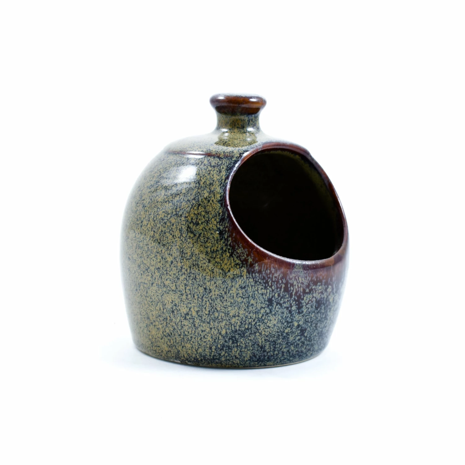 The interplay of deep blue-green and sandy glaze seems to shift in the light and captures all the colours of a coastal landscape – tree-covered cliffs, sandy beaches and multi-hued ocean. The Lagoa salt pig also features touches of striking deep terracotta around the rim and handle.