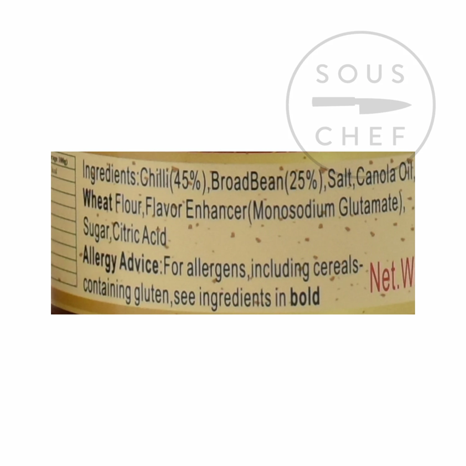Ingredients: Chilli (45%), broad bean (25%), salt, canola oil, wheat flour, flavour enhancer (monosodium glutamate), sugar, citric acid. Contains allergens: wheat.