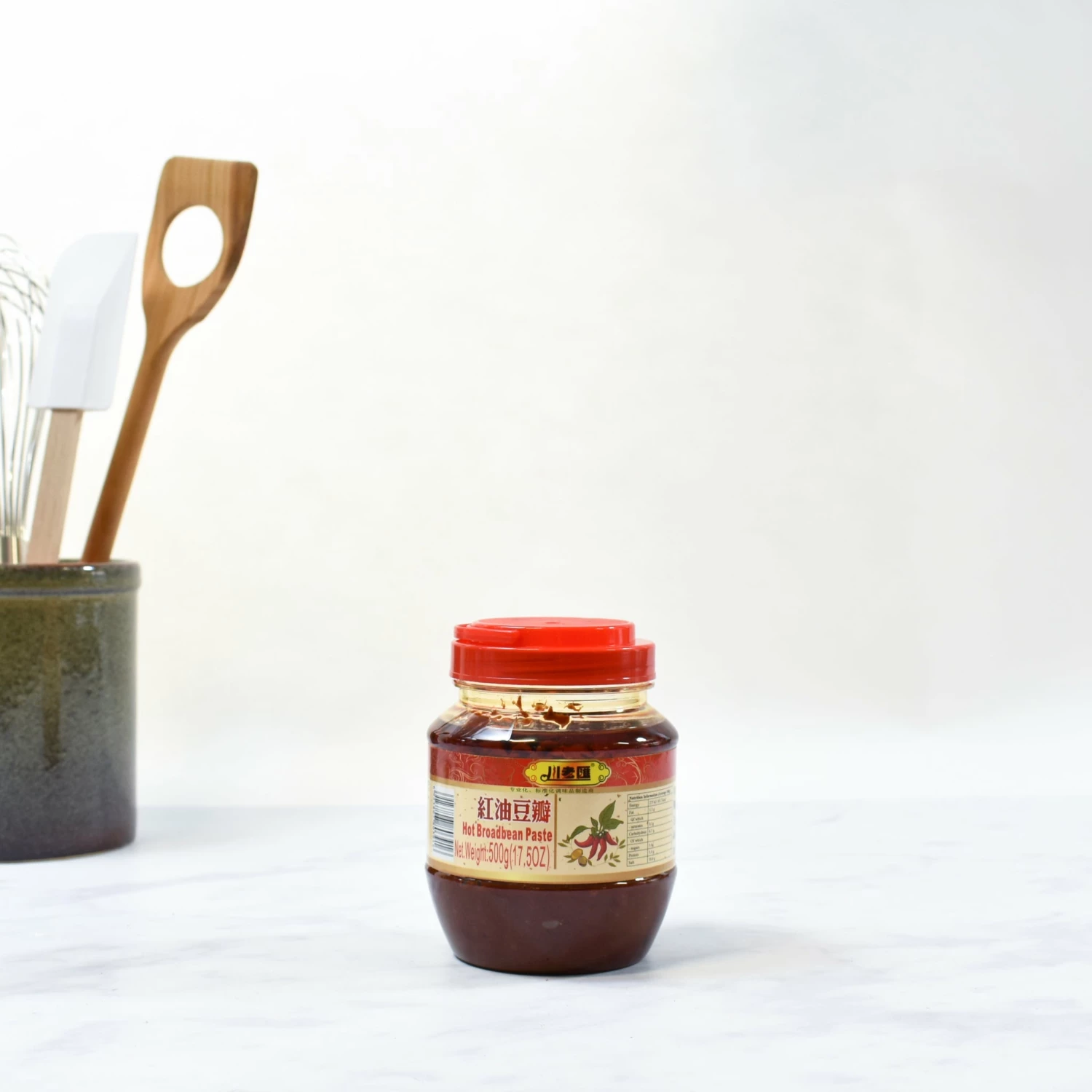 A fiery hot Chinese chilli bean paste with fermented broad beans.