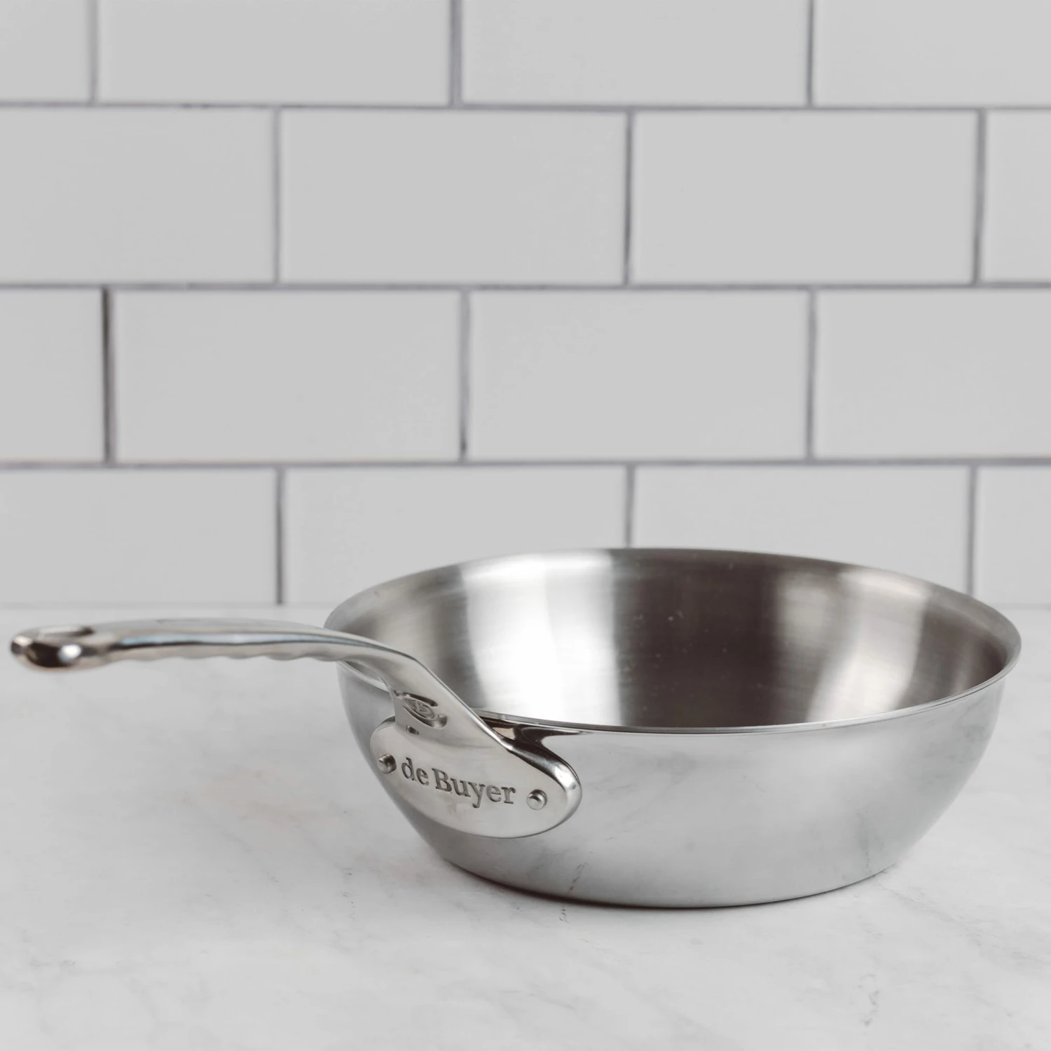 De Buyer’s Affinity stainless steel curved saute pan is ideal for reducing sauces in both professional kitchens and at home. With curved sides, this high-quality pan is ideal for sautéing diced vegetables, while the rolled lip allows for easy pouring of sauces.Â