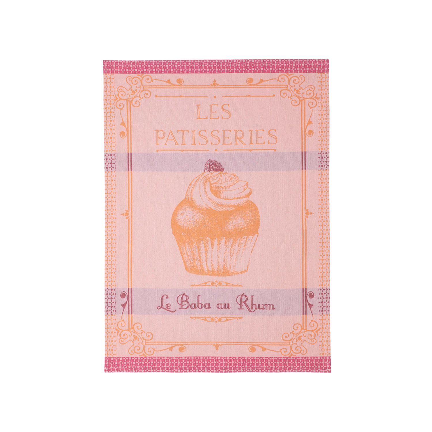 This French tea towel is illustrated with a Rum Baba – the classic Parisian soaked sponge. Beautifully decorated with cream and fruit, and in colours of soft orange and raspberry pink, this 100% cotton tea towel is a sweet touch to your kitchen linen drawer.