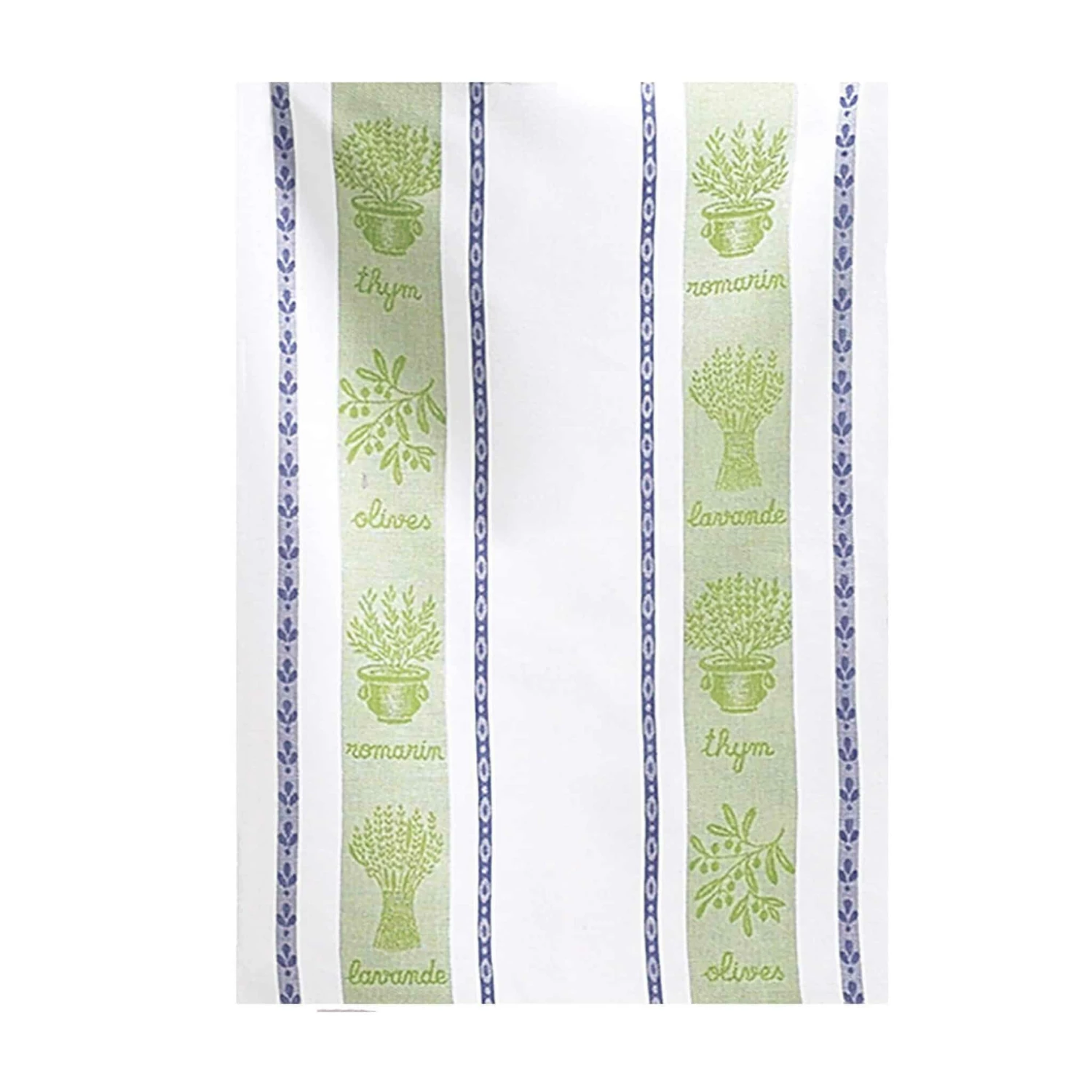 This elegant green dish towel is framed with decorative olive leaves and ornamental scrolls, and celebrates one of the essentials of great Meditteranean cooking – olive oil! The generously sized tea towels are made from 100% cotton, with rich green patterning.