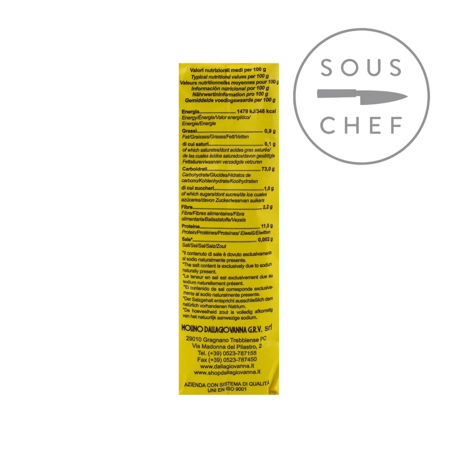 Dalla Giovanna’s ‘000’ pasta flour is a highly milled white flour with a very fine texture. It makes an extremely elastic pasta dough, which absorbs water extremely well. This triple zero flour makes velvety pasta dough – fantastic for pasta shapes and filled pasta.