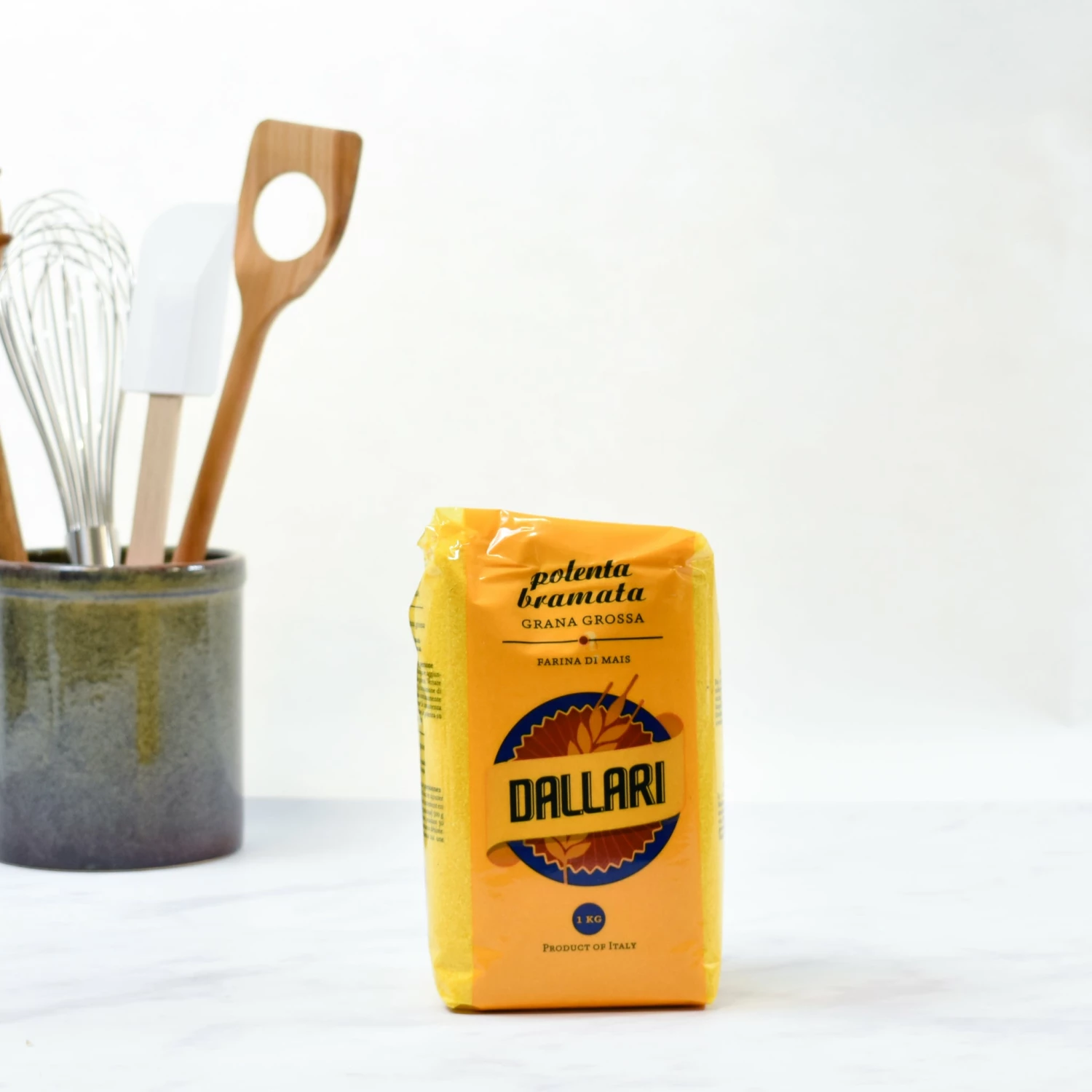 Polenta bramata or coarse cornmeal is the most common and versatile Italian polenta. It is a rustic, stone-milled, moderately coarse corn flour, and is boiled and cooked with butter for a classic Italian side dish. In traditional Italian cuisine, polenta is eaten with a knob of butter and stracchino cheese. Polenta bramata can also be used as a bed for meat, fish or mushrooms. Try coating fish and potato chips in the fine polenta bramata before roasting or frying for a crispy outer coating. In the USA, this coarse cornmeal is also known as grits, and is most often used to make cornbread, cornmeal cookies, or even in gluten-free cakes.