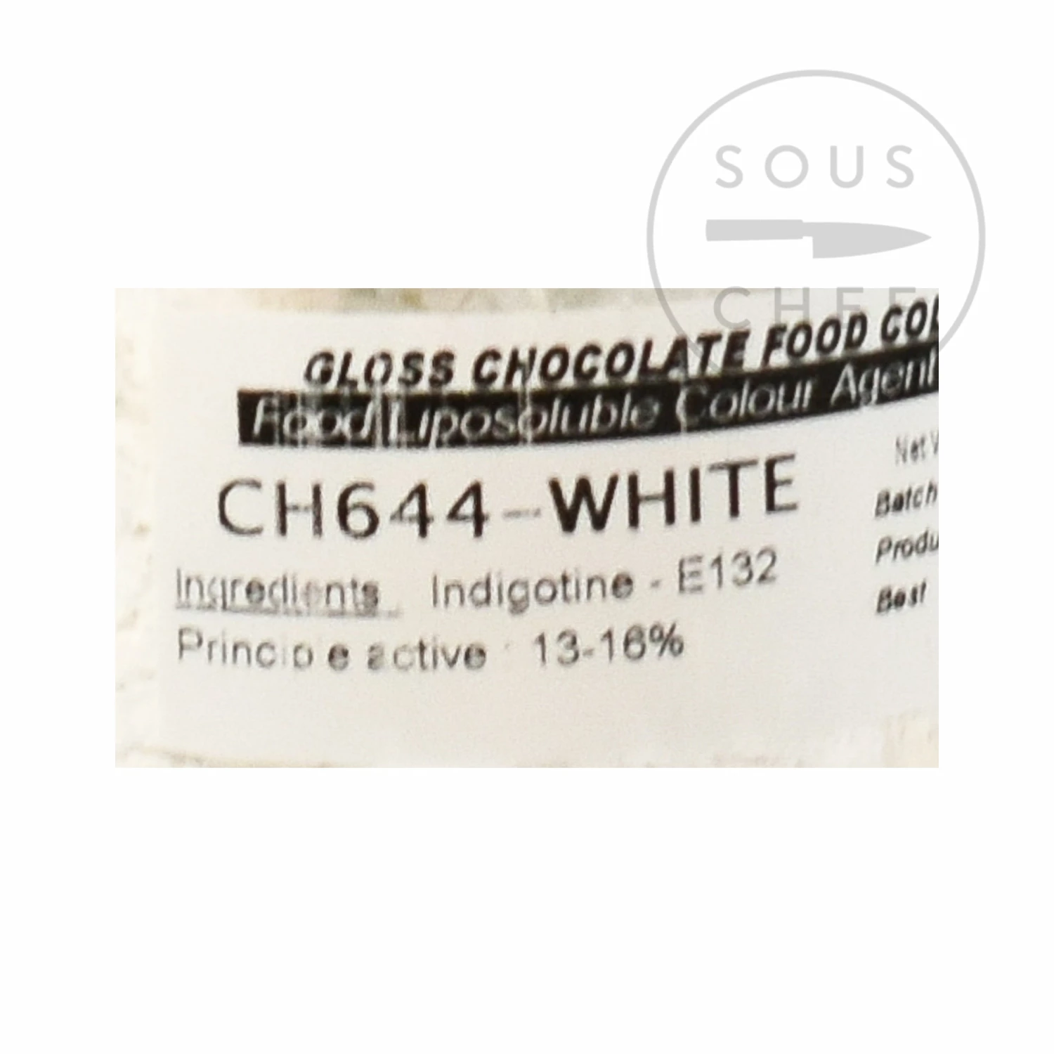 This professional white food colouring is fat soluble, perfect for use in pastry and chocolate work. The white food colour is made with a titanium dioxide base – and can also be stirred into the mix to whiten macarons, or other pastry desserts.