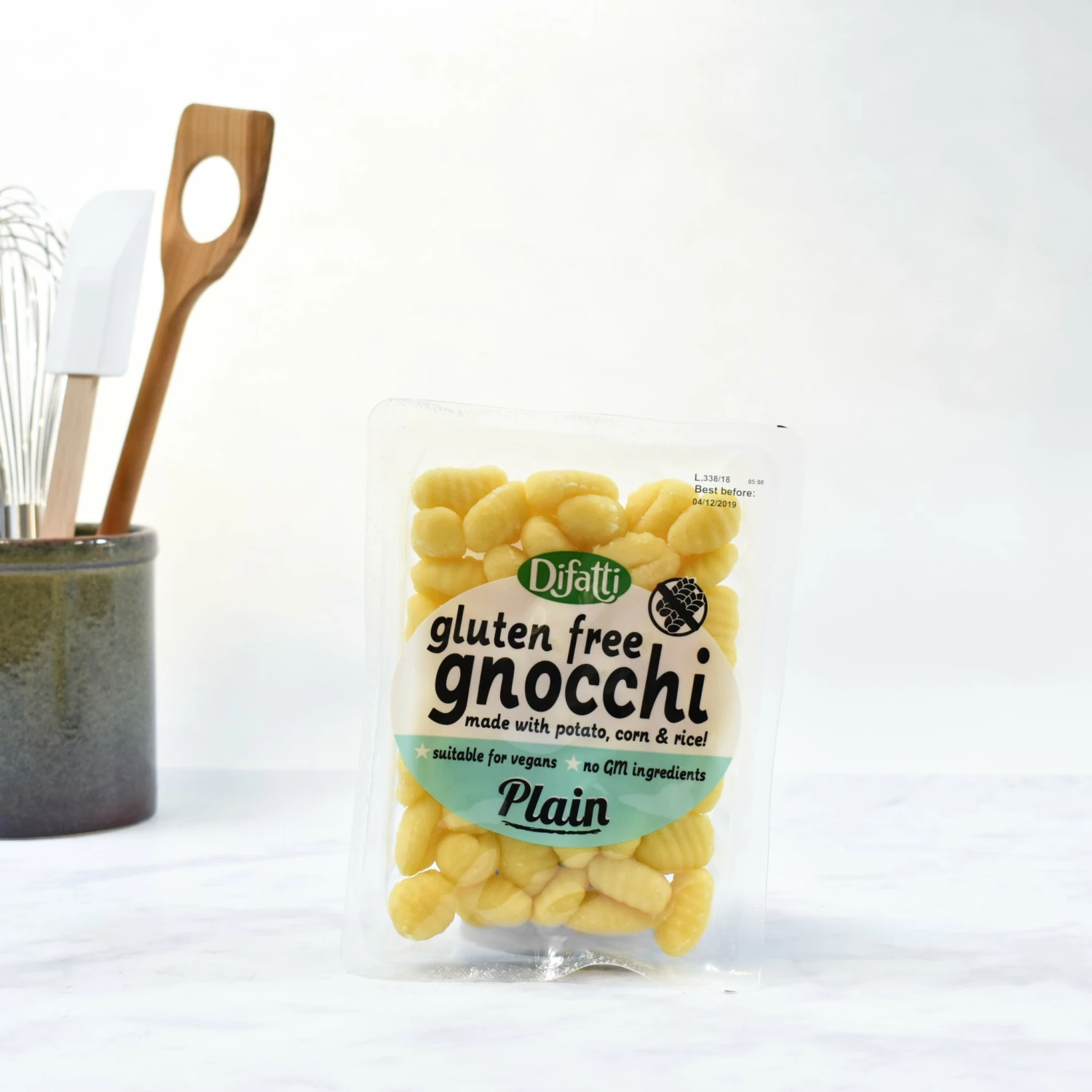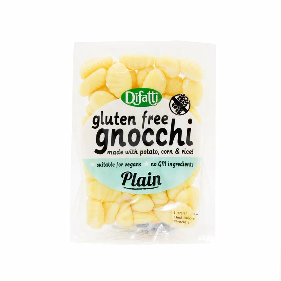 The gluten-free gnocchi are made with rice and corn flour instead of wheat flour. Difatti use traditional Italian methods to make sure they have the same great flavour and texture as classic gnocchi.