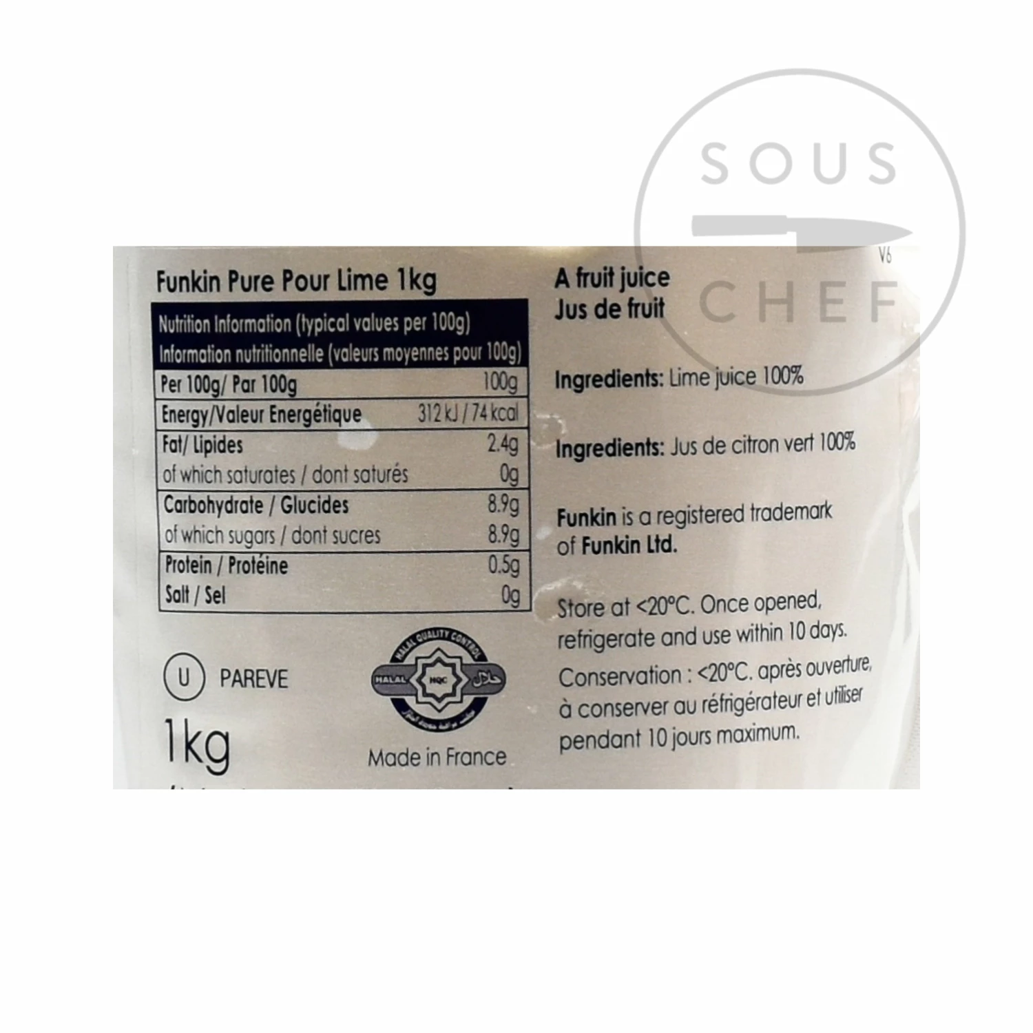 This natural lime juice, also known as lime puree or pure pour lime, is a versatile ingredient in cocktail making. Try using lime juice to make a classic mojito, daiquiri, Singapore Sling or Margarita. Lime juice is also a useful ingredient in pâtisserie recipes such as key lime pie and lime jelly.