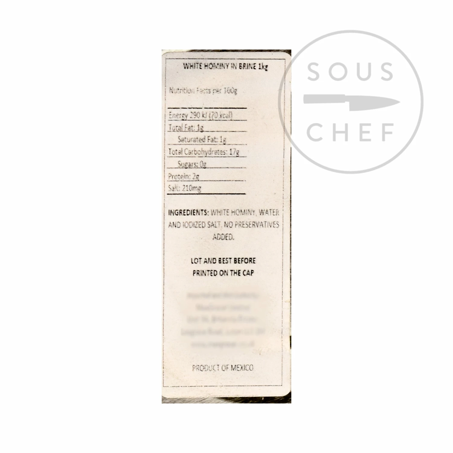Ingredients: White hominy, water, iodized salt
