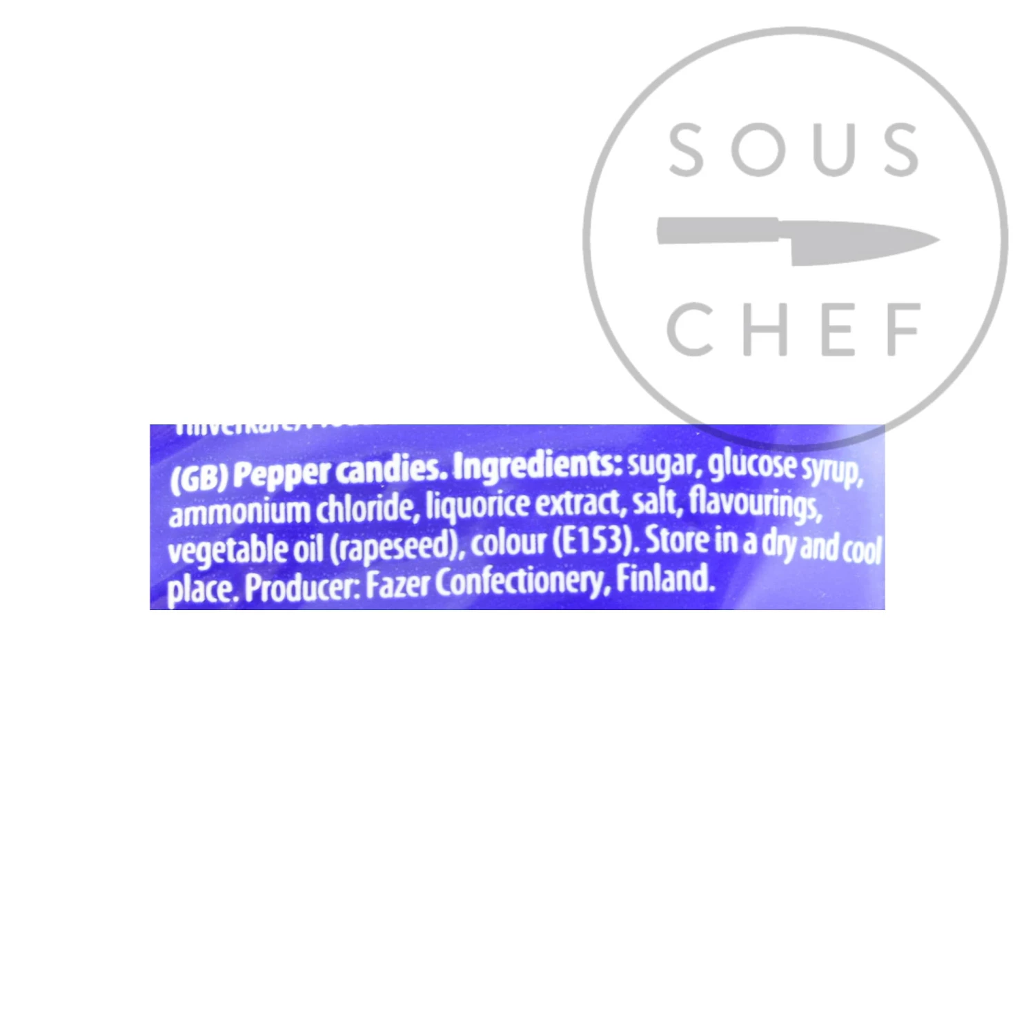 Fazer Tyrkisk Peber Original Hot Pepper liquorice hard candy is an iconic Scandinaivian sweet – one that packs a considerable punch! The boiled sweets are liquorice flavoured, and filled with a salty liquorice powder called salmiakki.Â