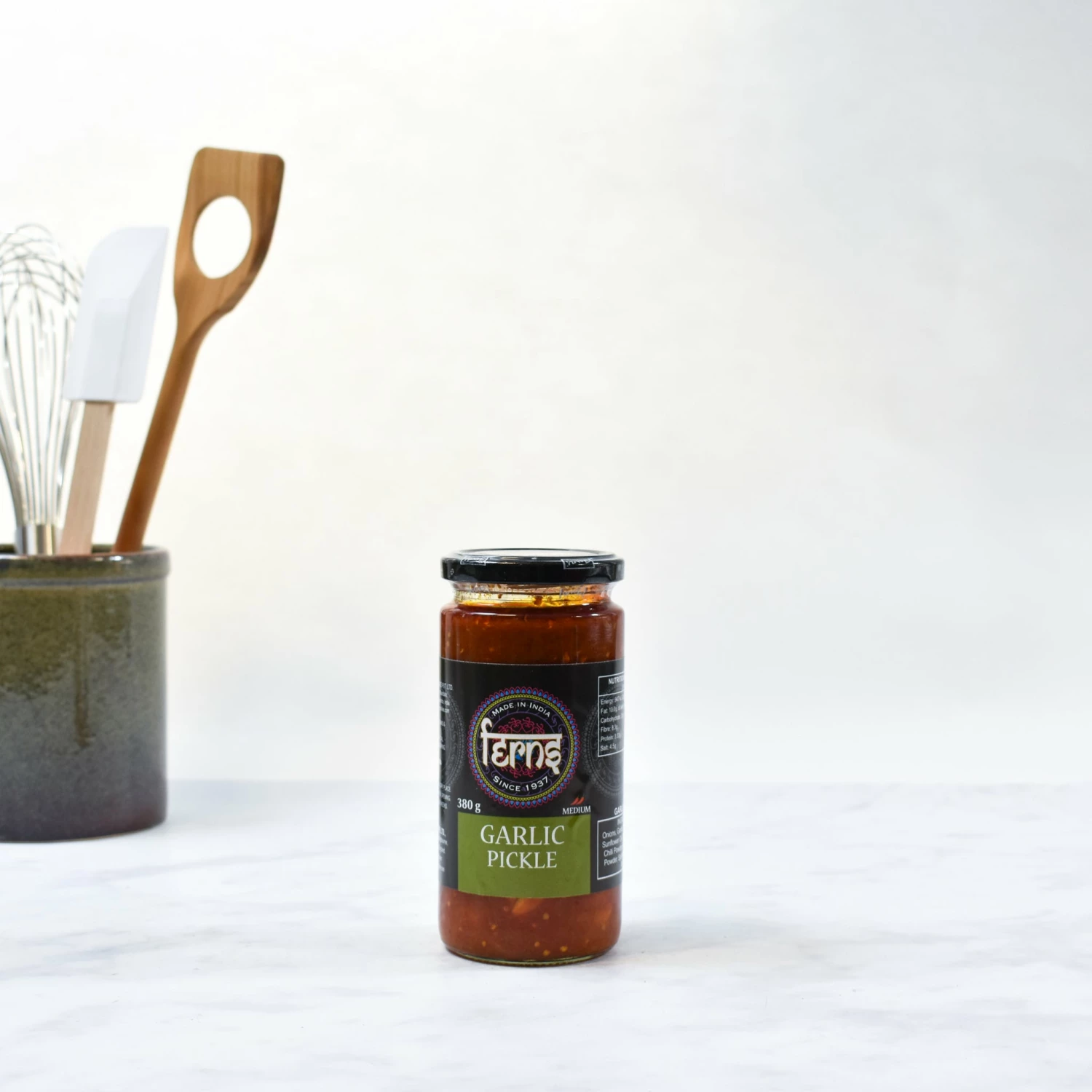 Ferns’ garlic pickle is a sweet tangy pickle made from whole cloves of fresh garlic. A spoonful of this garlic pickle makes a delectable accompaniment for curries and a tasty spread for spicing up sandwiches.