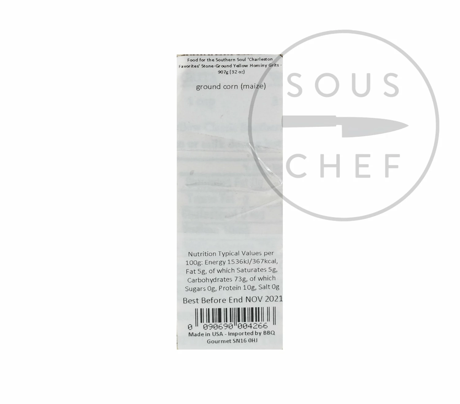 Food for the Southern Soul stoneground yellow hominy grits make authentic southern shrimp and grits. The yellow maize is ground on a stone mill, which produces a coarse grain with fantastic texture. The hominy grits are carefully selected from southern American corn, and are packaged in a beautiful fabric sack.