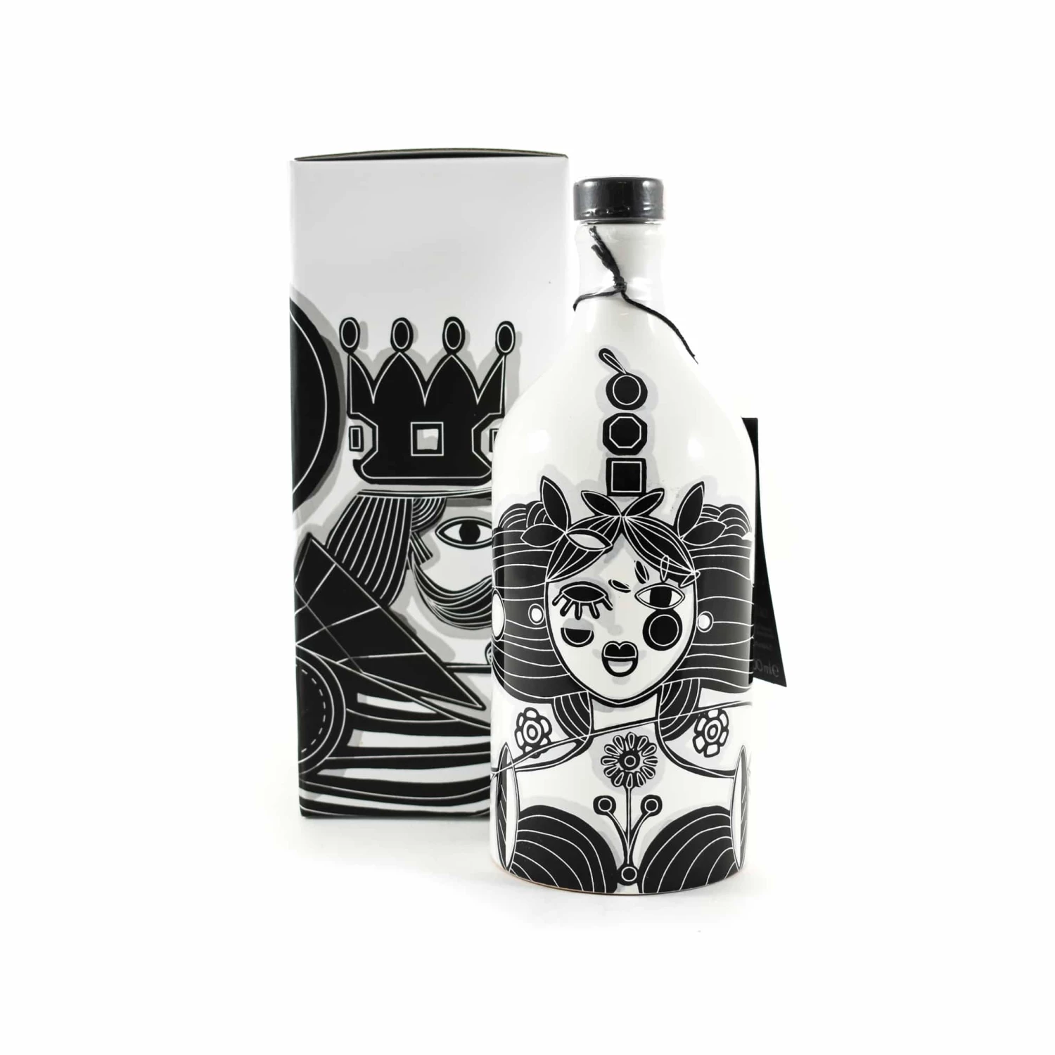 The three geometric symbols are paired with a striking ‘Mother Nature’ design. The ‘King’ intense fruity extra virgin olive oil is the perfect partner to create a delicious duo.