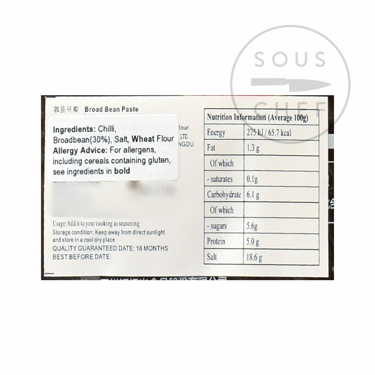 Ingredients: chilli (48%), broad beans (30%), salt, wheat flour.