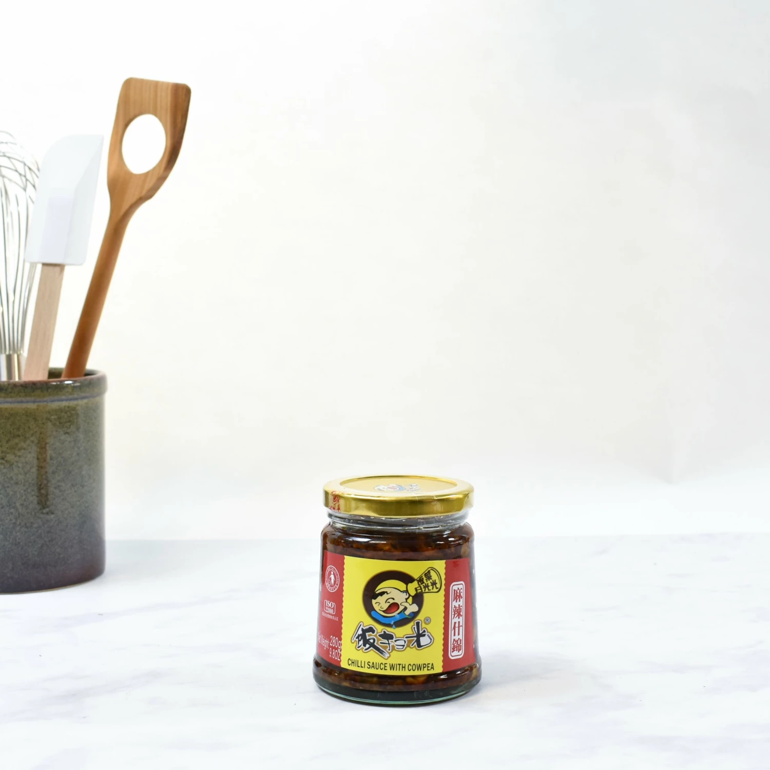 Ingredients: canola oil, chilli 21%, cowpea 6.5%, preserved vegetable, chinese lettuce, peanut, soybean, sesame, flavour enhancer E621, spices, acid E330. Allergens are listed in bold.