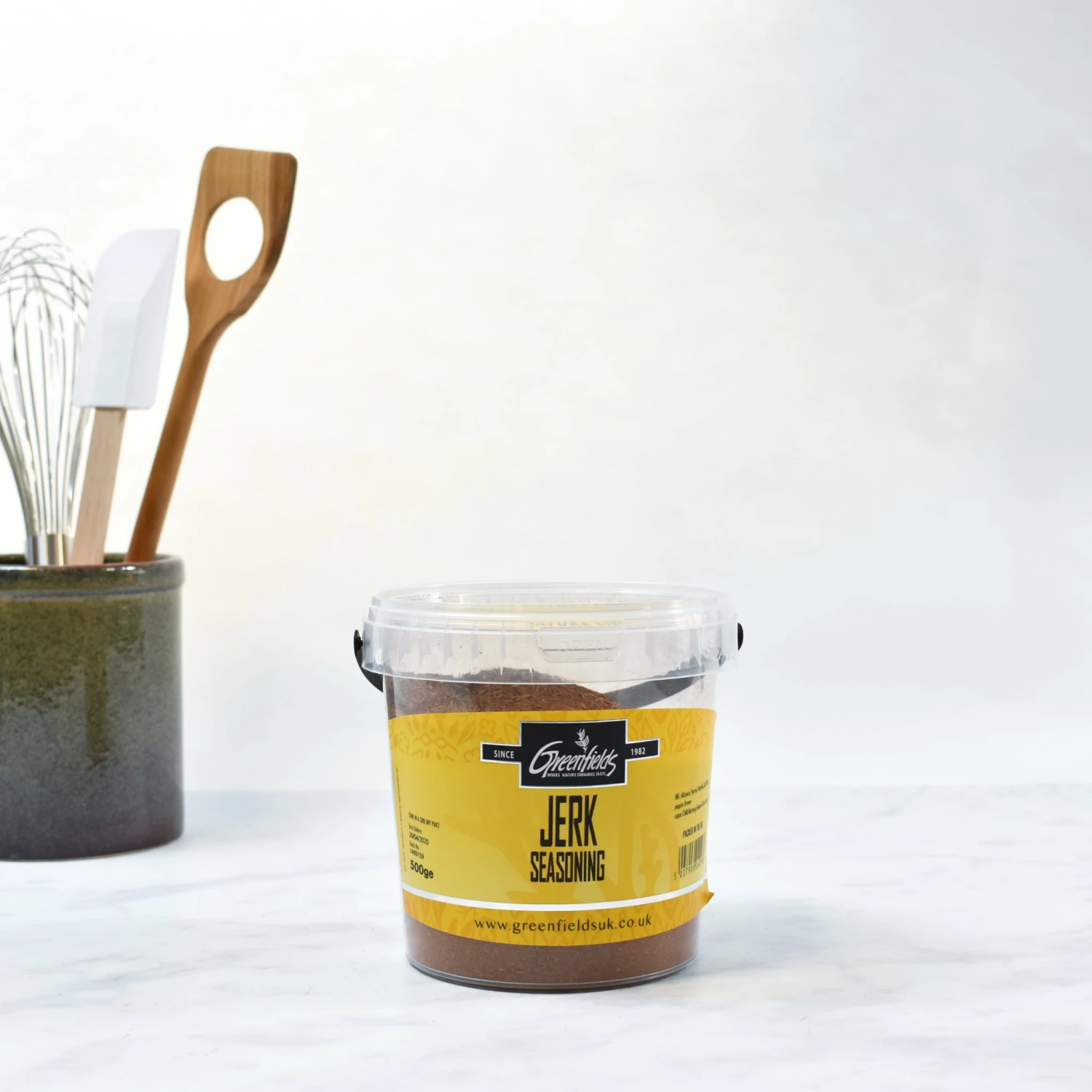 Jerk seasoning from Greenfields, a second generation UK-based family business. Greenfields’ herbs and spices are used by restaurants, artisans and street food producers across the country – all who enjoy their great value, kitchen-safe and easy-to-use resealable plastic tubs for their ingredients. Their philosophy is to provide good quality products at a great price.