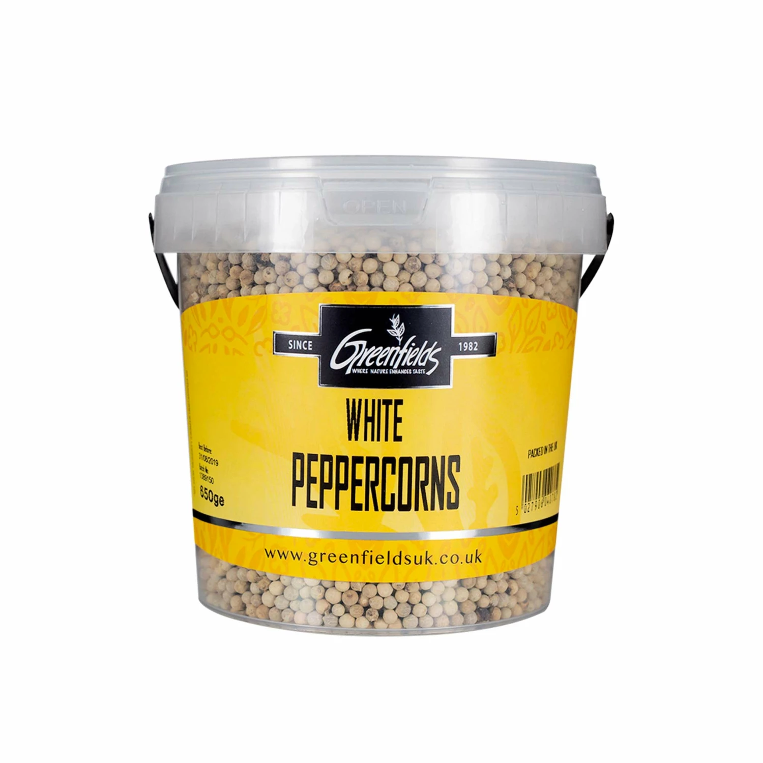 White peppercorns add fragrant, milder peppery notes to white sauces for steak and fish.