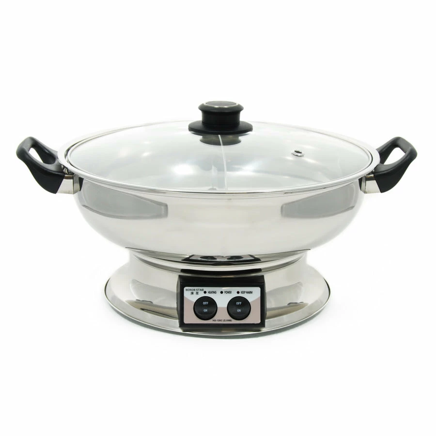 This electric table-top hot pot is for cooking and serving traditional Chinese hot pot, steamboat, or Chinese fondue at the table. Chinese hot pot originated in Mongolia, Northern China, over 1,000 years ago, and is enjoyed across east Asia. The hot pot is classically served as a large bowl of broth at the centre of a table, often with two separate sections, one hot and spicy, and one mild and fragrant – easy with this table-top hot pot.