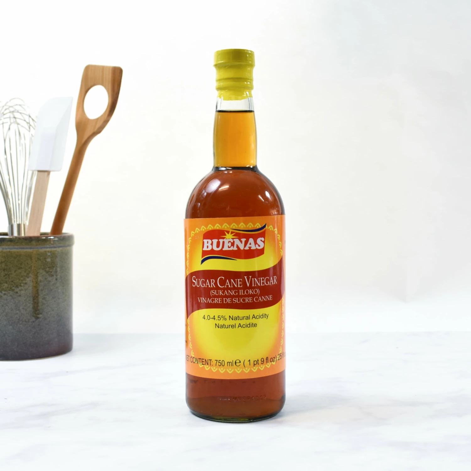 Buenas sugar cane vinegar – also known as sukang iloko – is a mild but distinctive vinegar in Filipino cuisine. It’s often used to make sweet & sour sauces in Filipino cuisine. It is made from fermented sugar cane juice, a process that makes the finished vinegar more sour than sweet, tasting like a lightly vinegared apple juice.