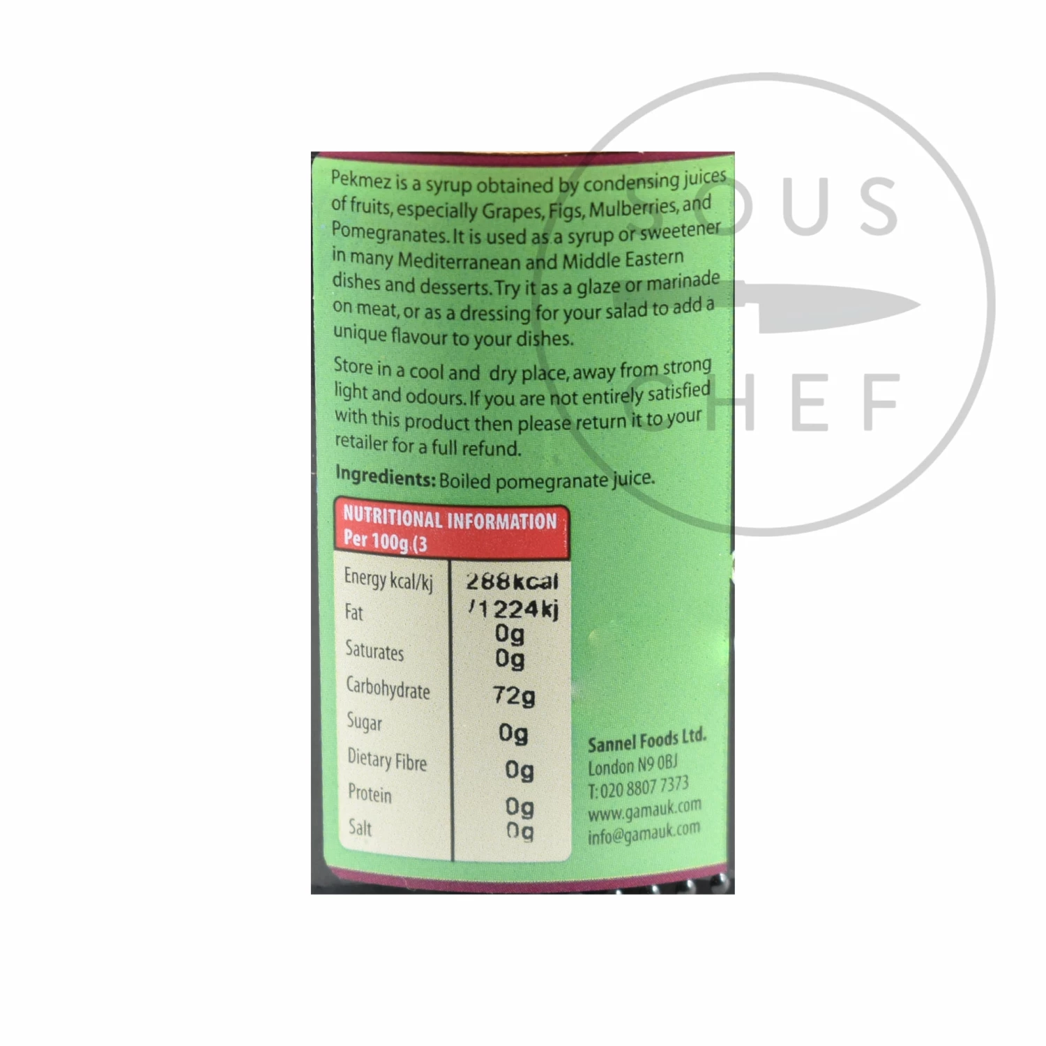 Pomegranate molasses is a sweet, tangy syrup popular in Middle Eastern cooking. This pomegranate molasses is made by boiling pomegranate juice until the syrup is produced.Â