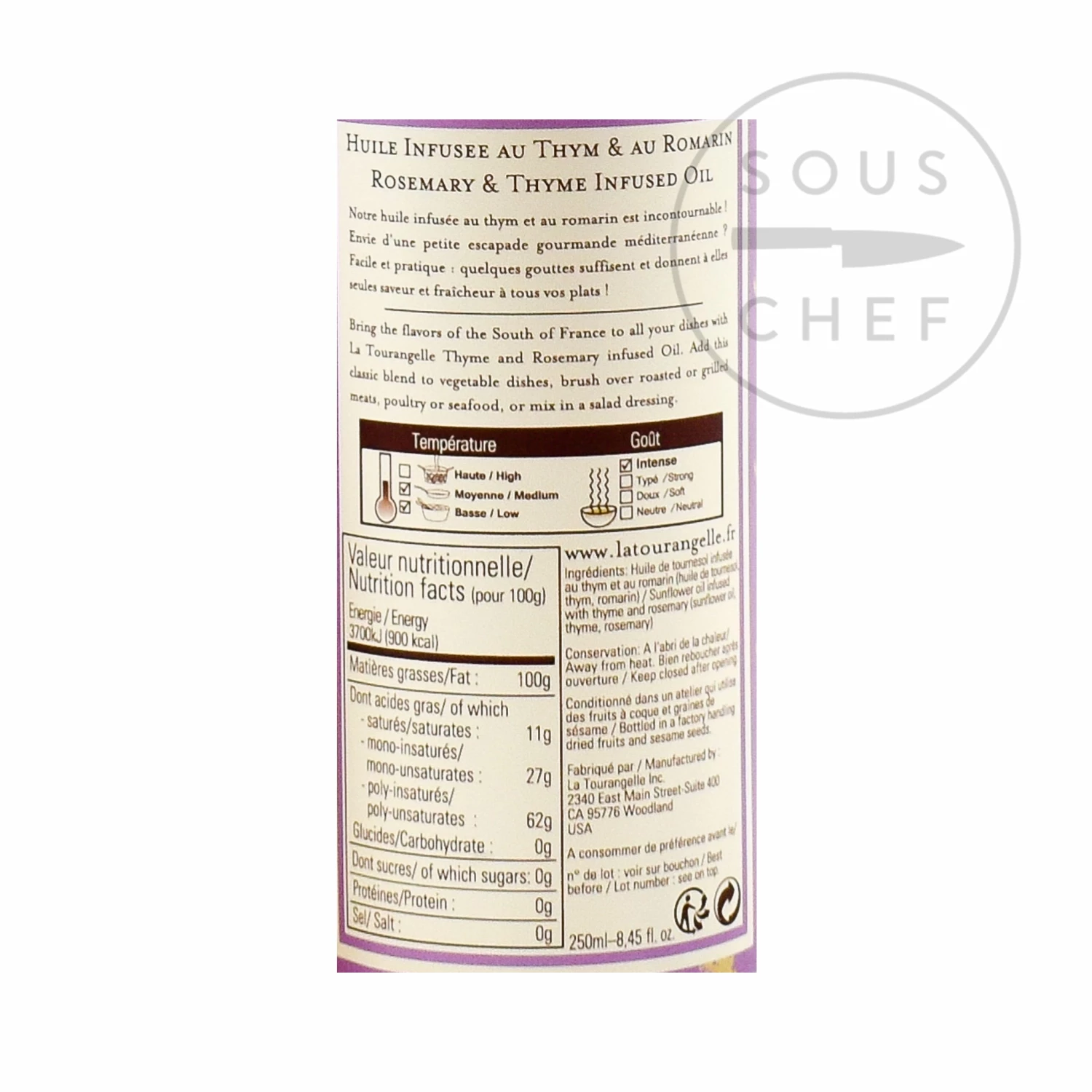 Ingredients: sunflower oil, thyme, rosemary.