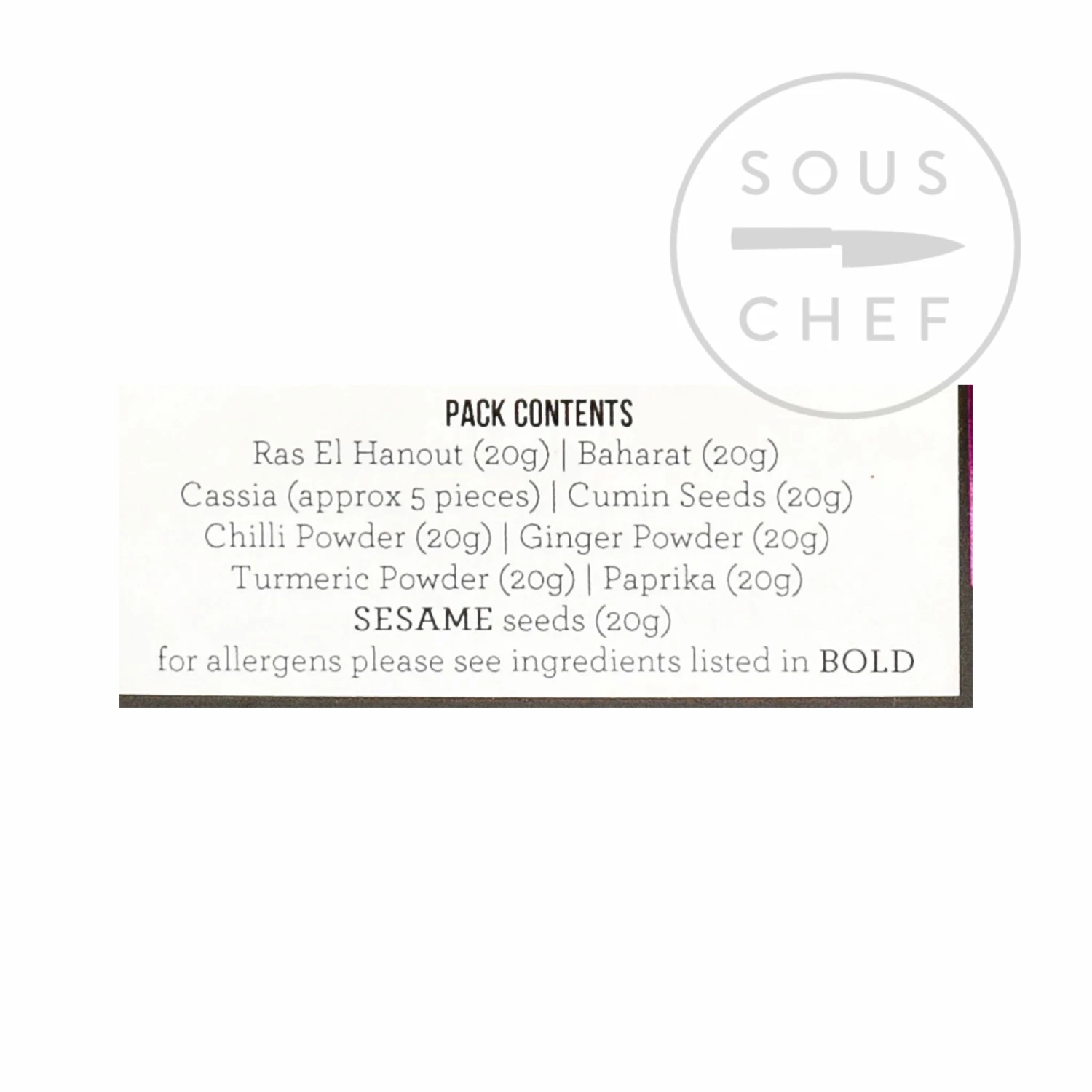 - Ras el Hanout 20g– warm, aromatic blend of cumin, coriander, cinnamon, ginger, black pepper, turmeric and cardamom