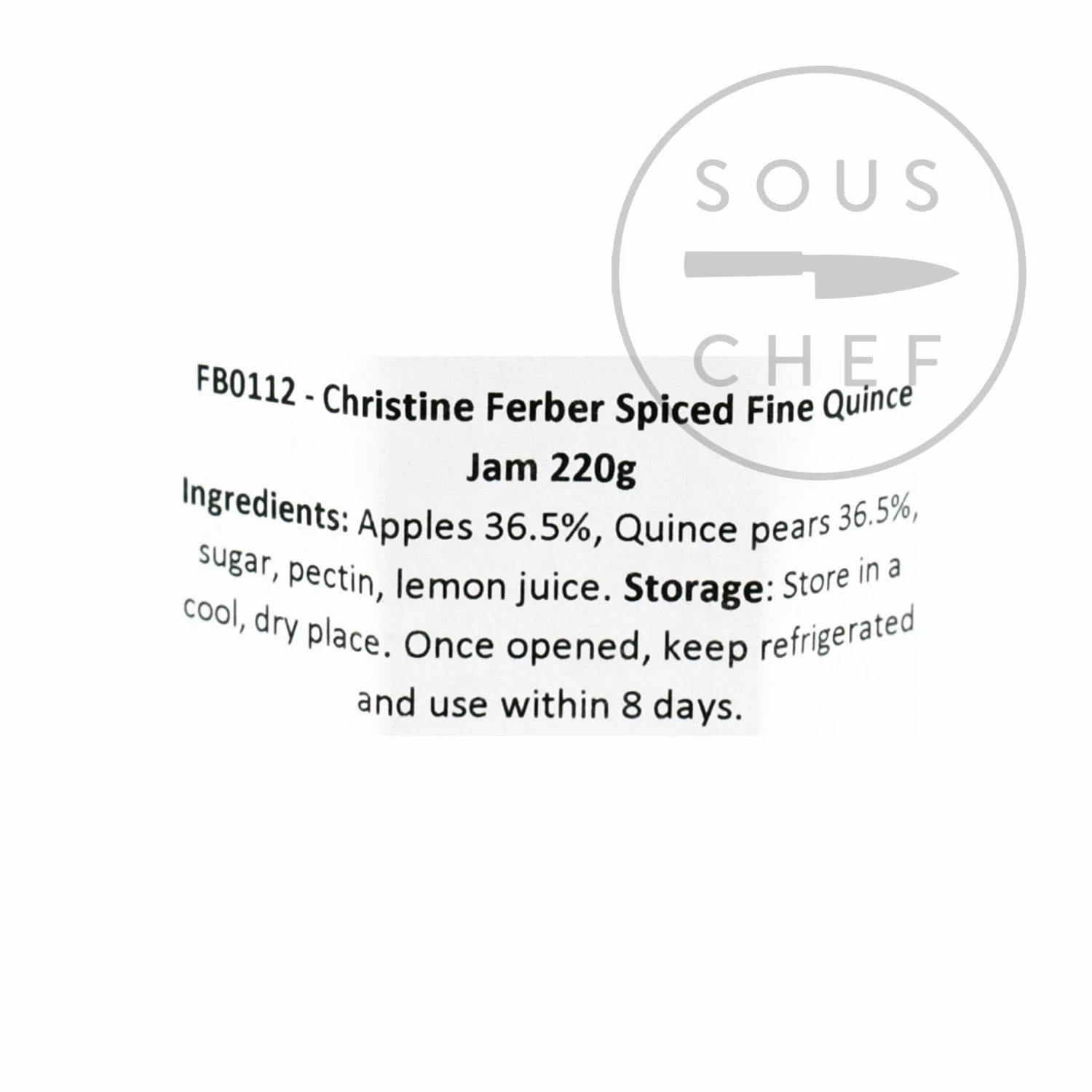 Ingredients: Apples 36.5%, quince pears 36.5%, sugar, pectin, lemon juice.