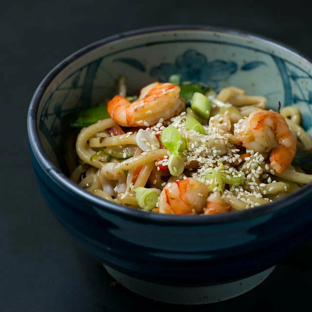 Attractive Japanese stoneware bowl, traditionally used for kamaage udon, a hearty noodle soup dish.