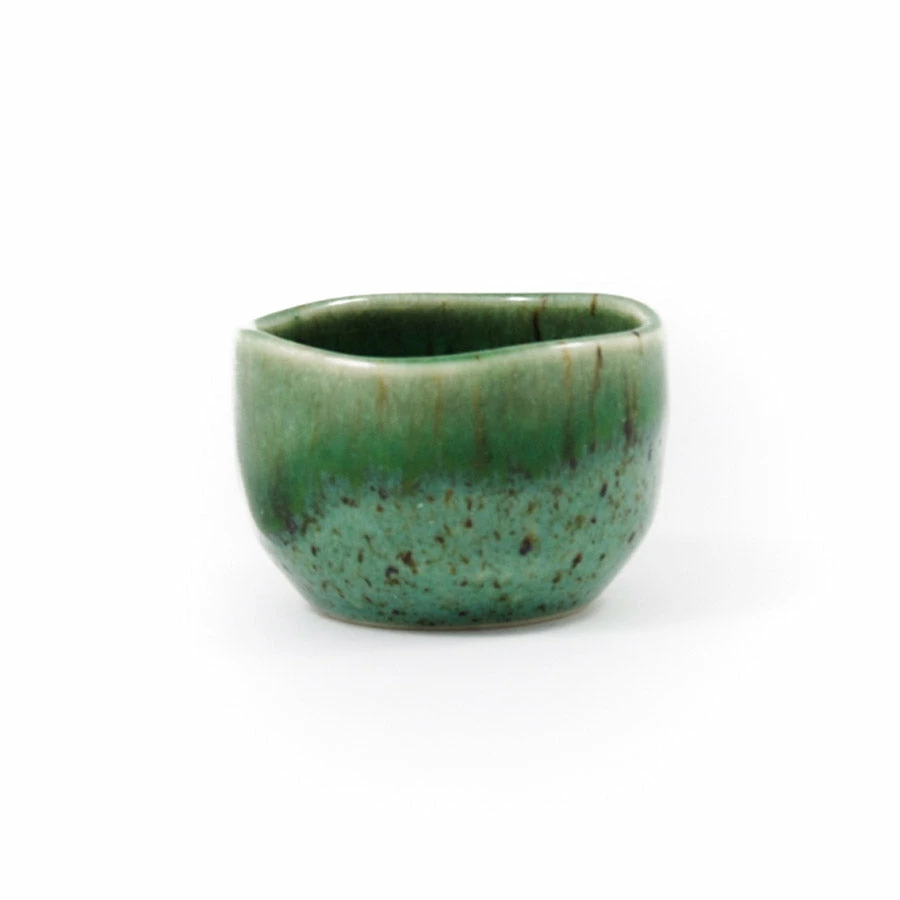 Use the madara sake cup to enjoy your sake in traditional Japanese fashion. The stunning green stoneware cup is decorated with deep brown flecks, giving it the appearance of a speckled egg underneath a ‘dripping’ green crackle glaze.