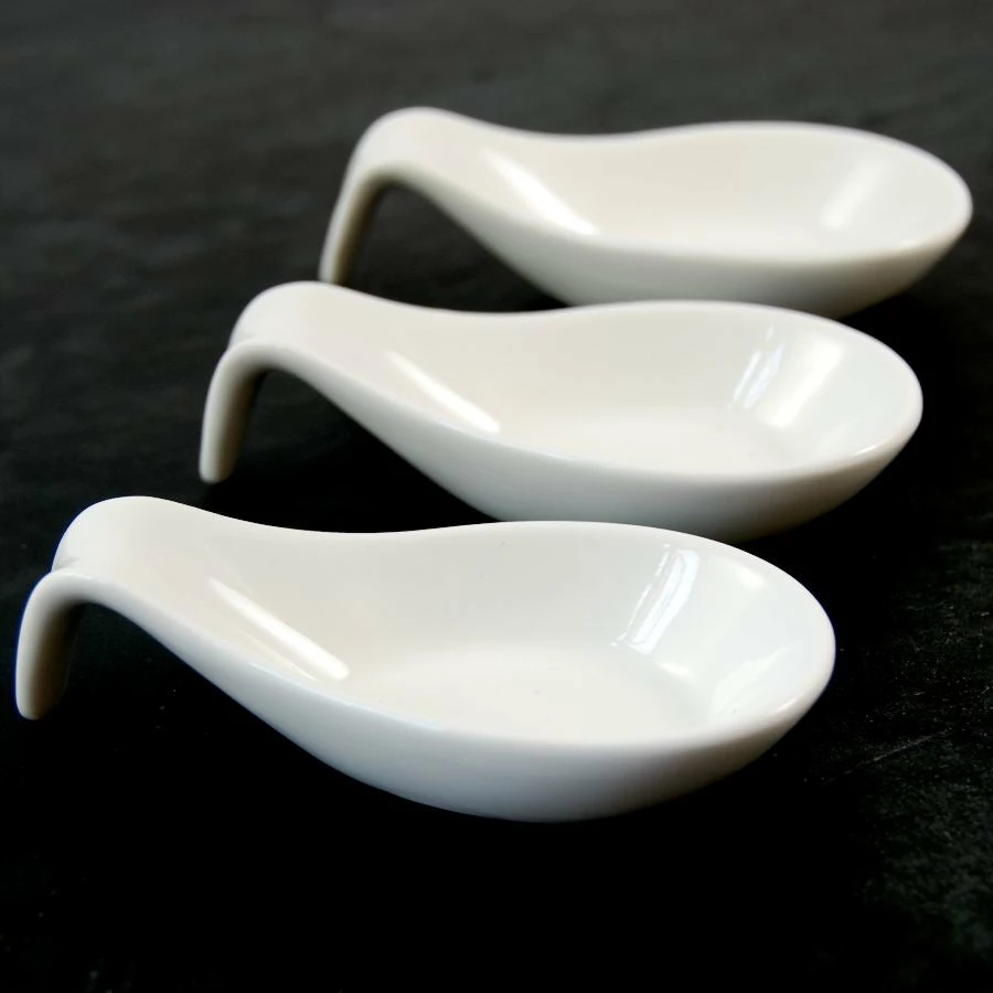 Kiji Stoneware & Ceramics White Drop Handle Canape Dish X 12