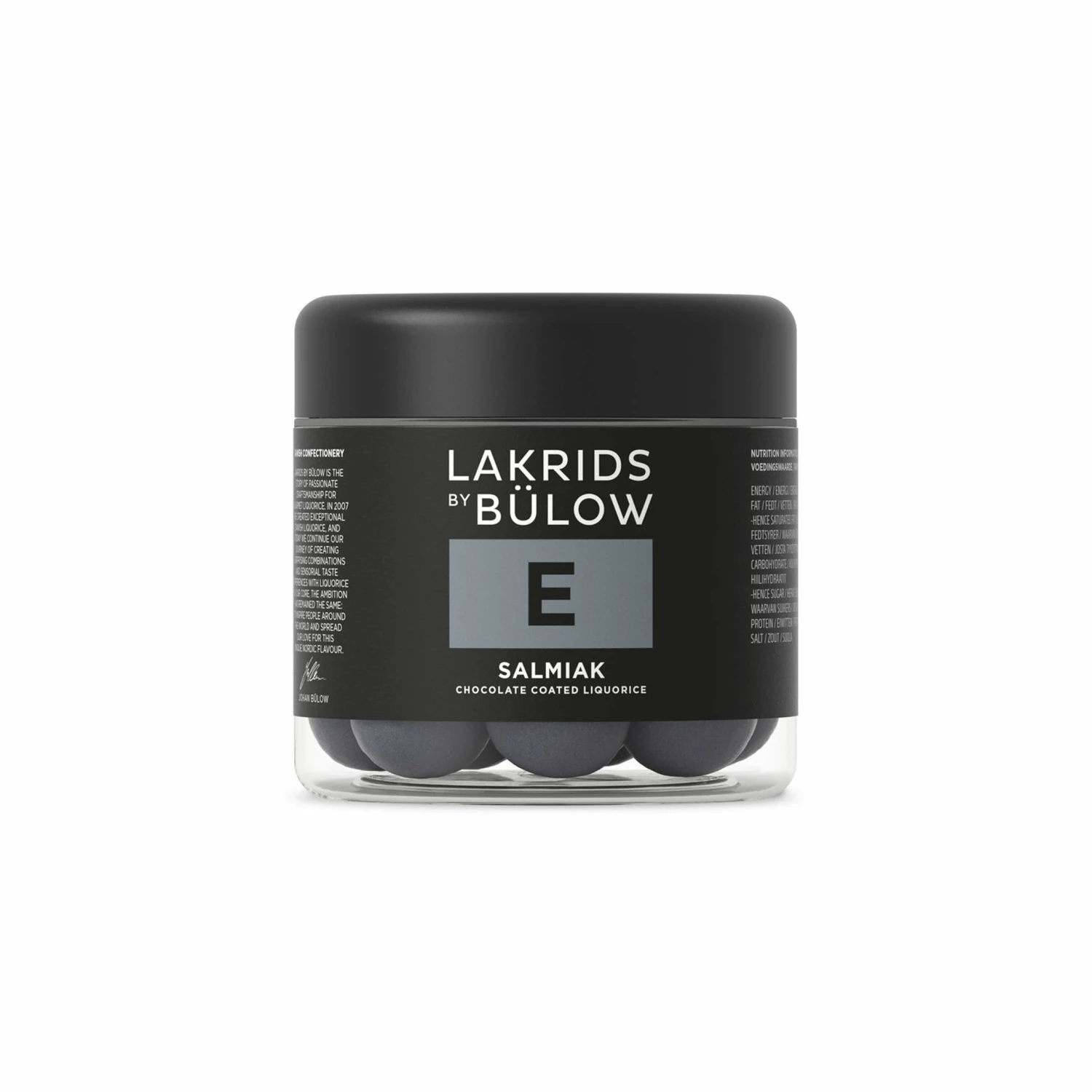 Lakrids liquorice E – salmiak is an intriguing sweet-savoury experience. A crisp sugar shell surrounds creamy white chocolate with subtle vanilla notes. In the centre you’ll find an intense salted liquorice core, the savoury notes both contrasting and complementing the sweet chocolate.