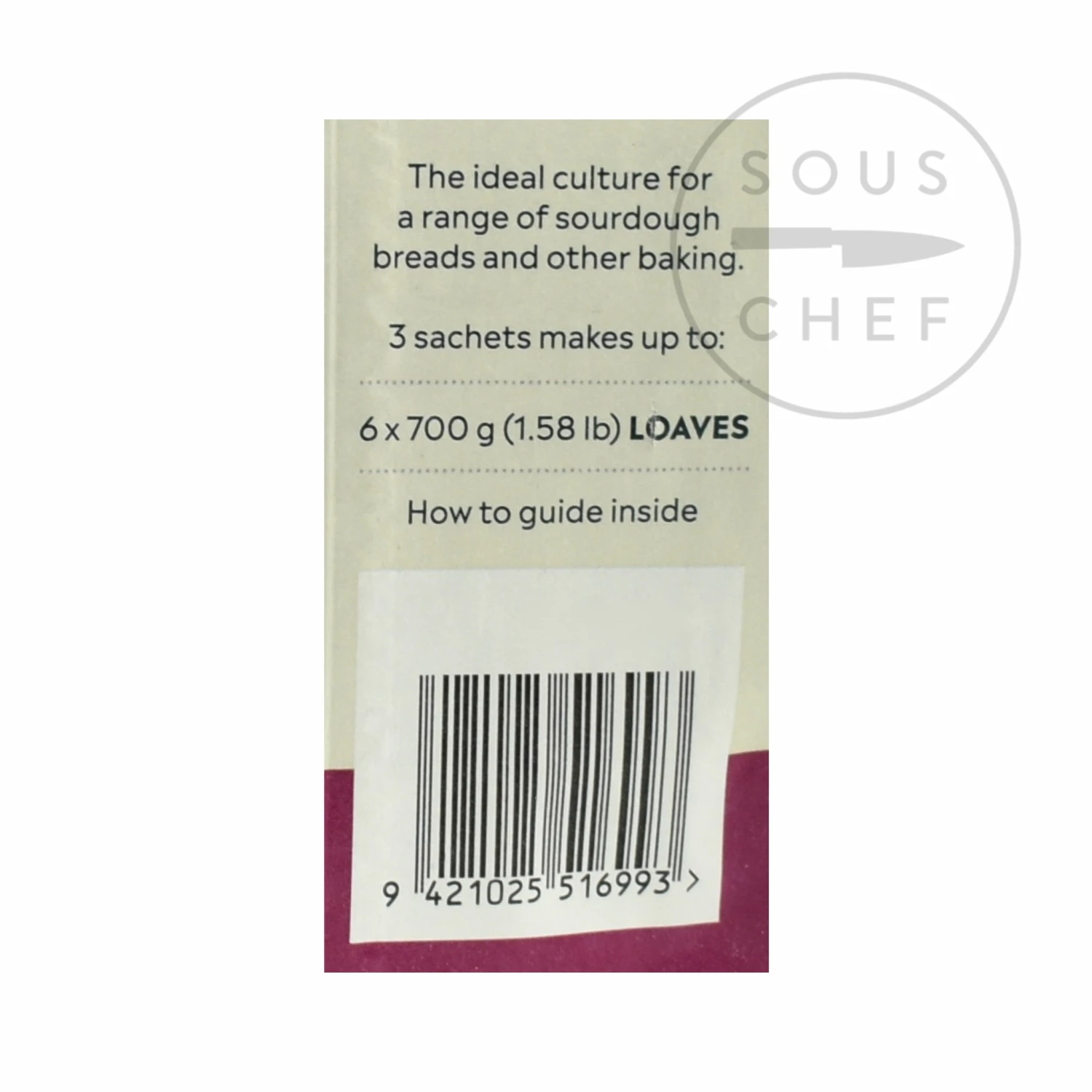 Contains 3 sachets. Ingredients: yeast, dextrose, Lactococcus lactis subsp. Cremoris, Lactococcus lactis subsp. lactis, Lactococcus lactis subsp. lactis biovar diacetylactis, Leuconostoc. Contains milk. Allergens are listed in bold.