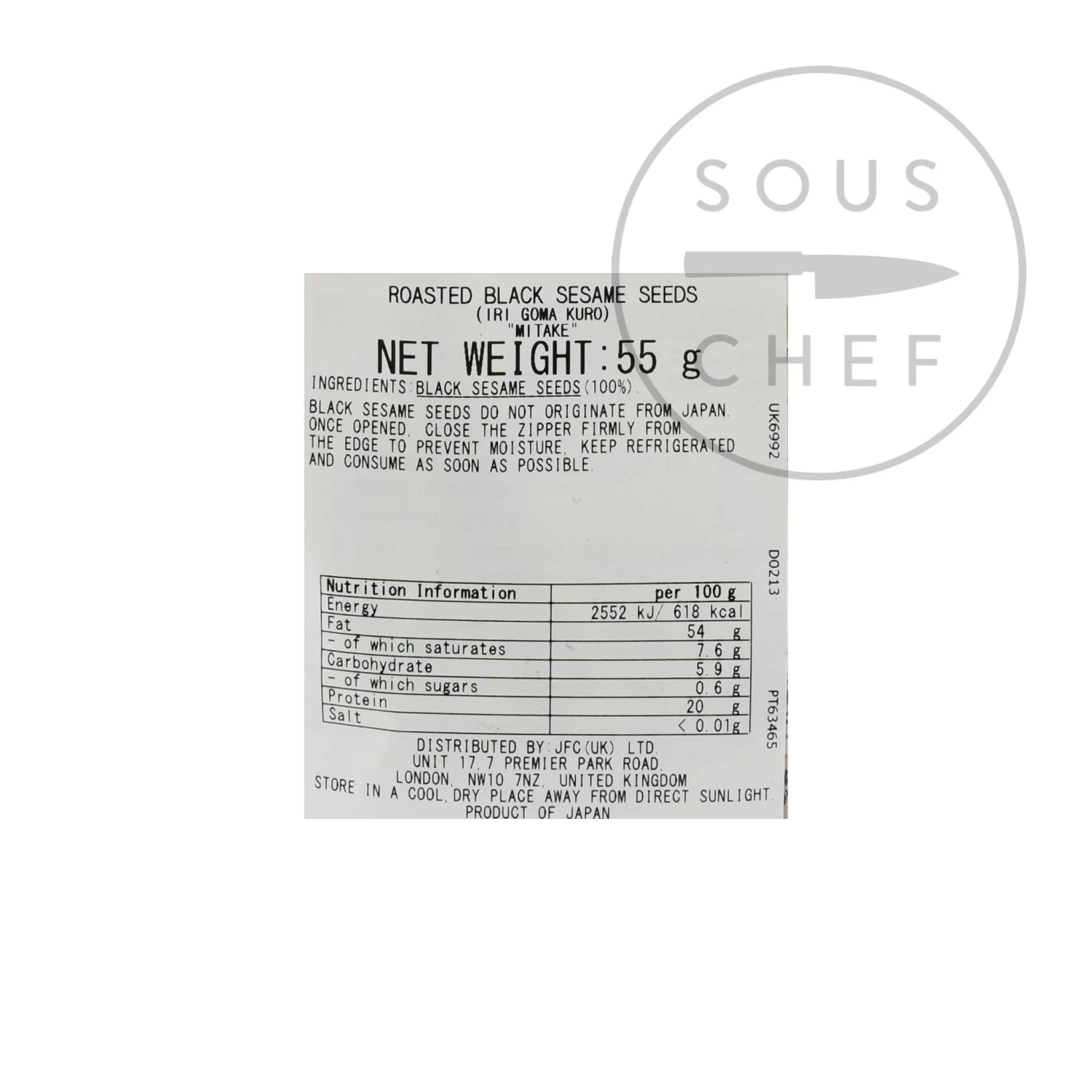 Toasted black sesame seeds, also known as umami irigoma kuro, have a crunchier texture and stronger flavour than white sesame seeds. This is because they still have the dark husk on the seeds. They come from the pods of sesame plants – the phrase “Open Sesame” referring to the moment the pods burst open releasing their seeds.