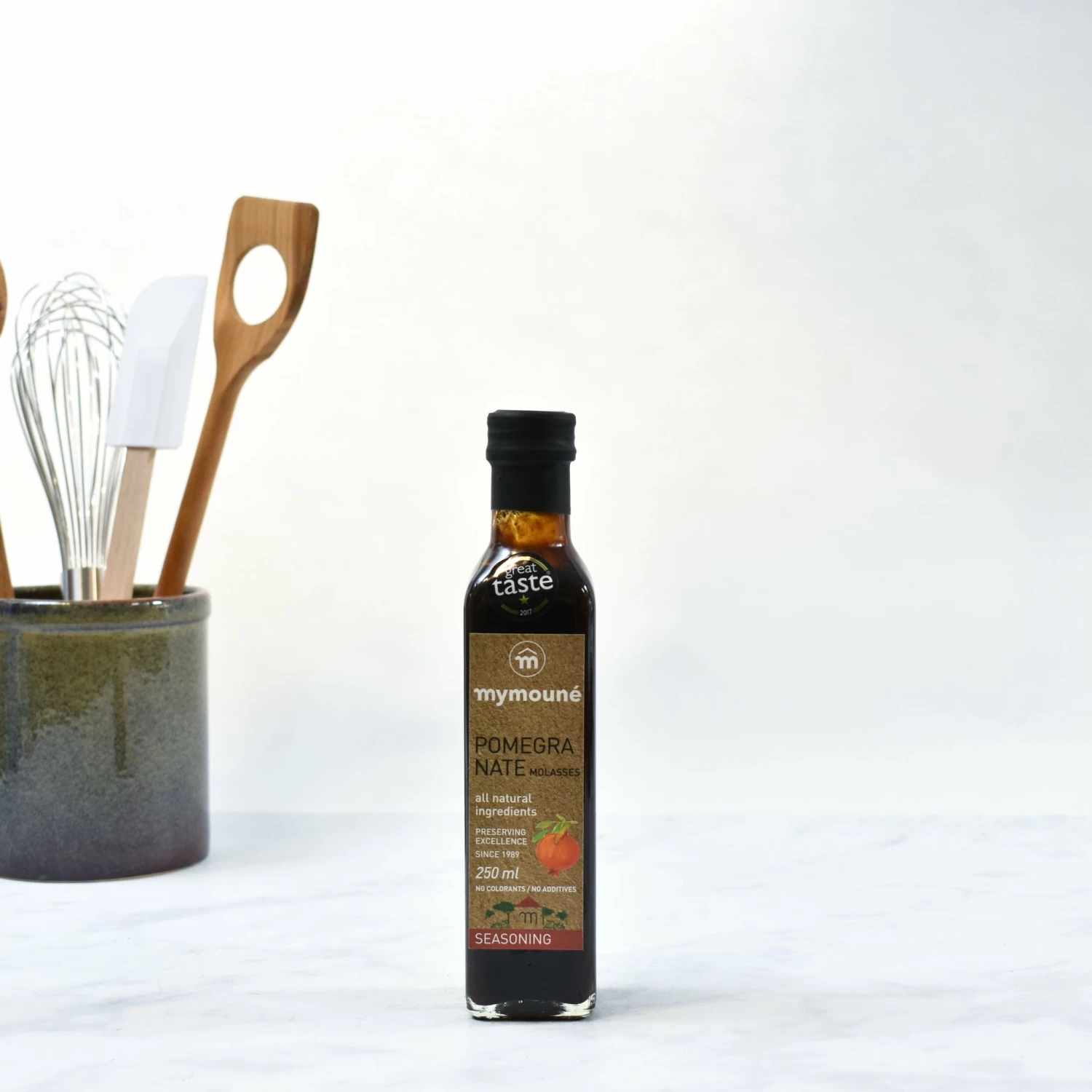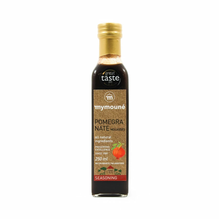 Mymouné’s Pomegranate Molasses is made with 100% pure pomegranates – no extras, no additives. Thick, sweet and tangy, the pure pomegranate molasses makes a great alternative to balsamic vinegar when served in salad dressings with good quality olive oil. Try using the pomegranate molasses to marinate duck or chicken, for a sticky-sweet glaze you and your family will love.
