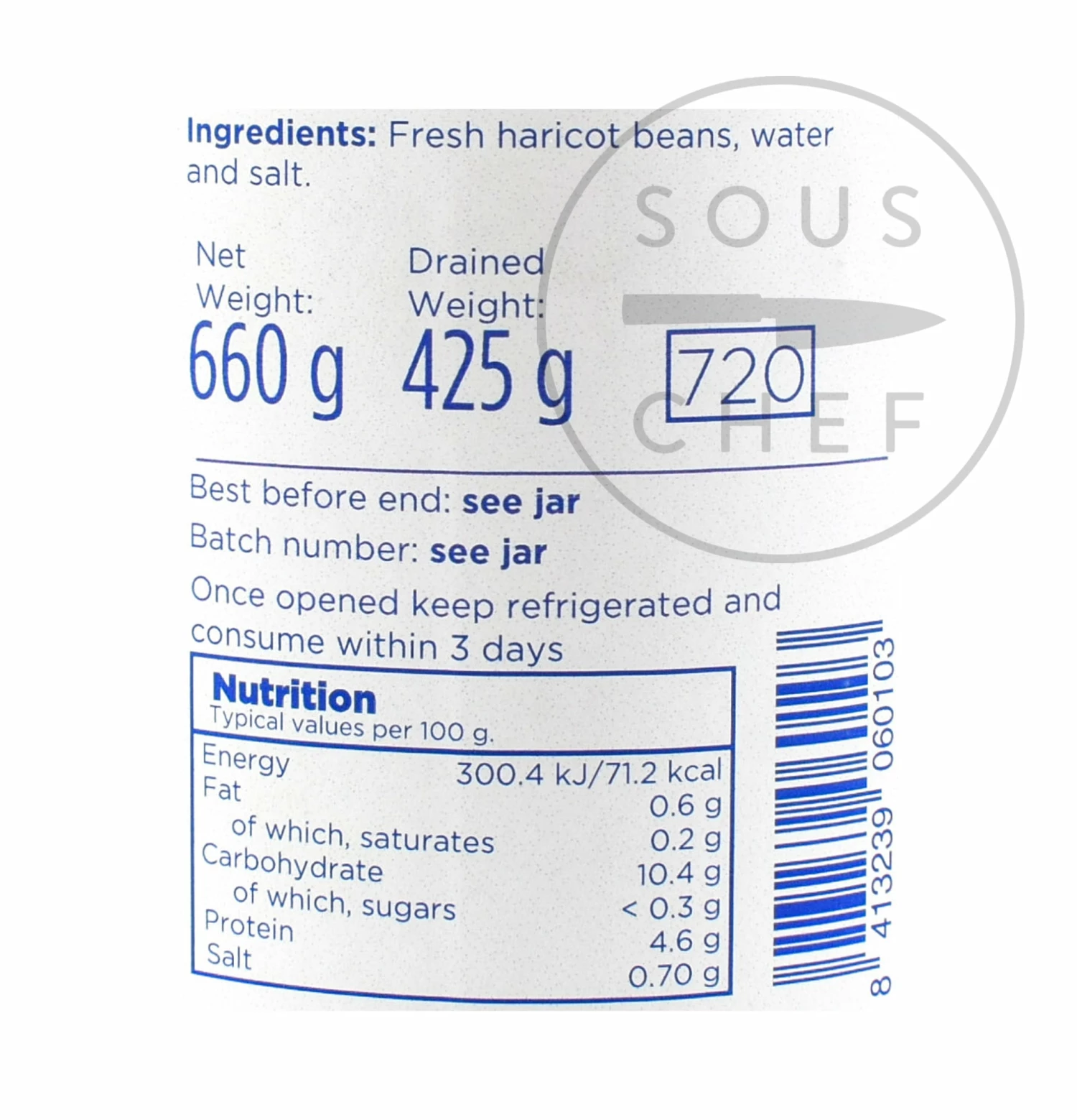 Ingredients: Fresh haricot beans, water and salt.