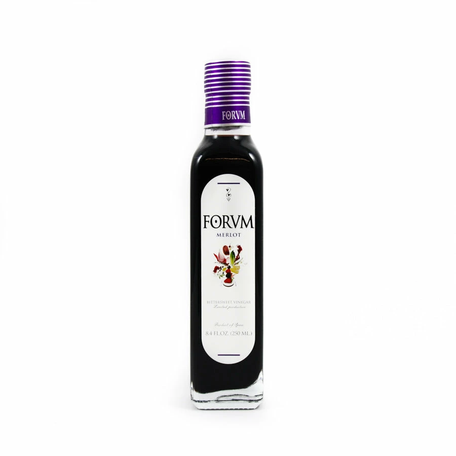 Forum, Forvum or Forvm merlot vinegar is a fruity, bittersweet Catalan vinegar made from young merlot wine. Unlike Forvm’s other vinegars, the merlot vinegar has not been aged in oak casks and contains 35% grape juice, which gives sweeter, more rounded flavours. The intense red-violet hue gives a vibrant touch of colour to salads. The red fruit flavours also work well with desserts – use the vinegar in a sweet reduction and drizzle over fresh fruit salads or red berry cheesecake.