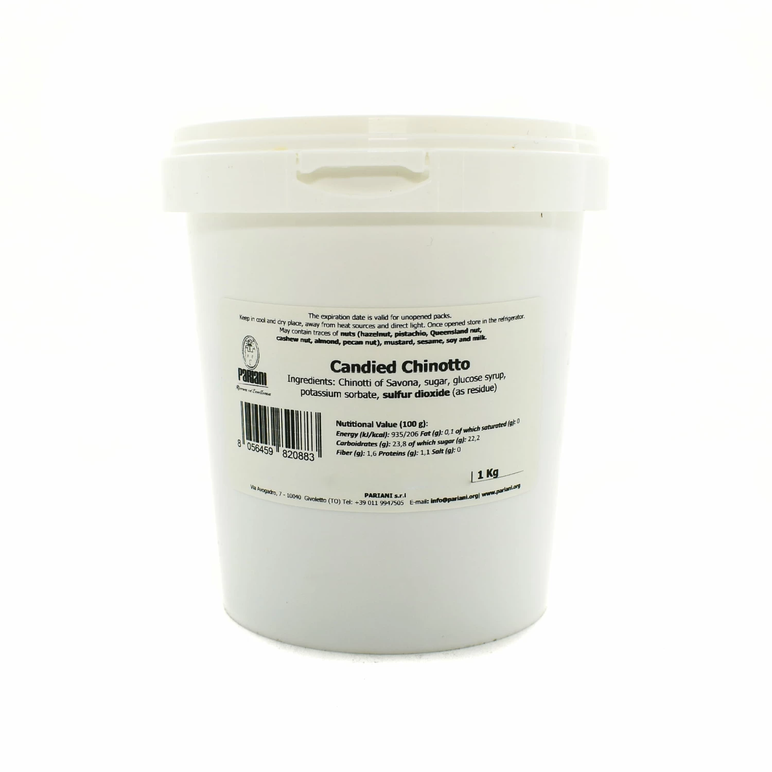Pariani’s candied chinotto adds an aromatic, herbal bitter orange flavour to panettone doughs, ice cream and cakes. Ligurian chinotto fruits – also known as whole sour oranges – are placed in tins, then covered with a hot sugar syrup.Â