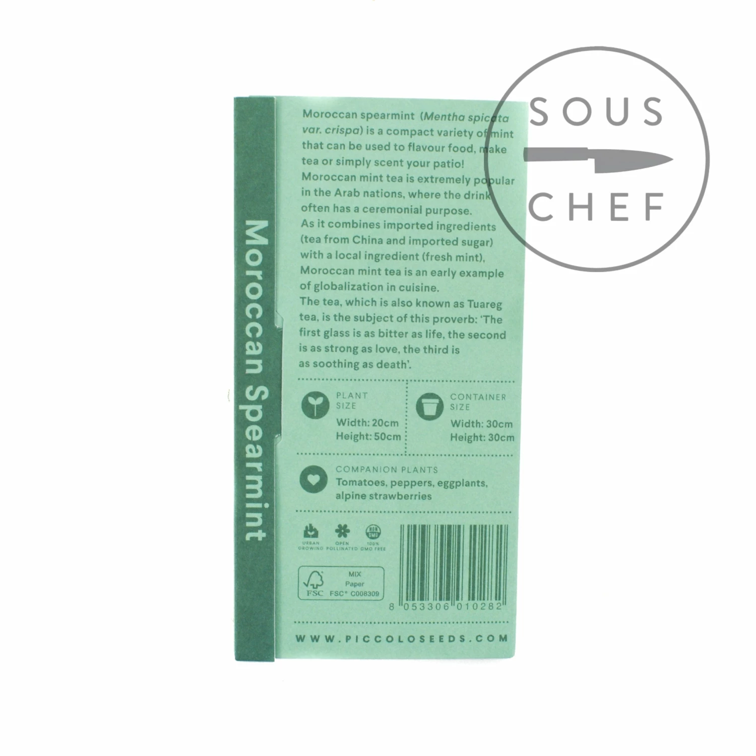 Moroccan spearmint seeds grow into attractive, compact plants – ideal for making fresh mint tea every day. The pointed mint leaves have a slightly sweet flavour, which works well in deserts such as sorbet, salads or even mixed with basil to make a punchy pesto for pasta.