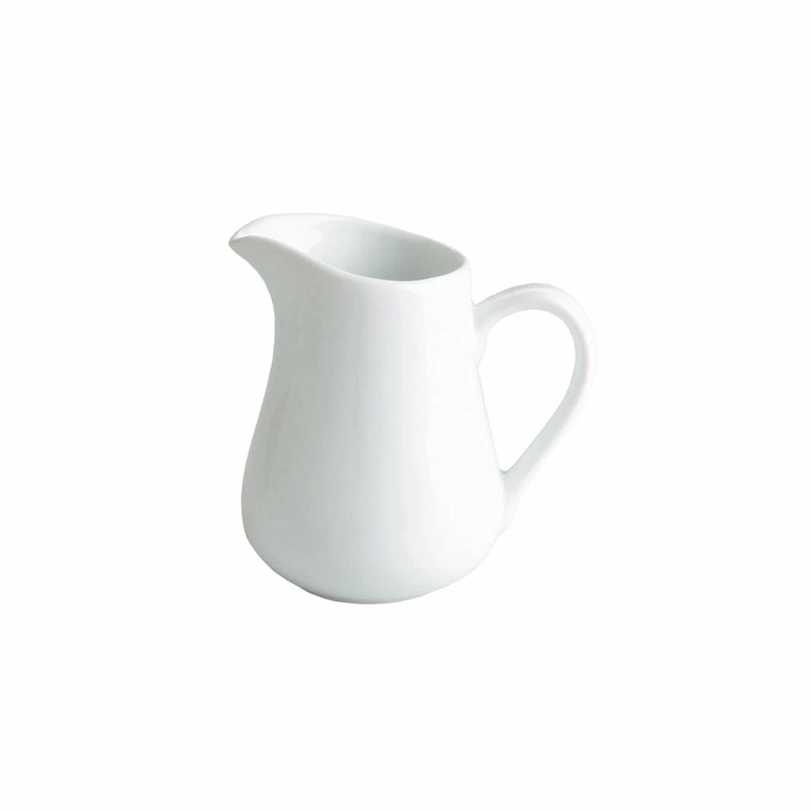 These white porcelain pouring jugs are simple and gracefully curved. Use for serving milk with tea and coffee. Can also be used for individual servings of sauce or jus to go with amuse-bouches, delicate dishes or desserts.