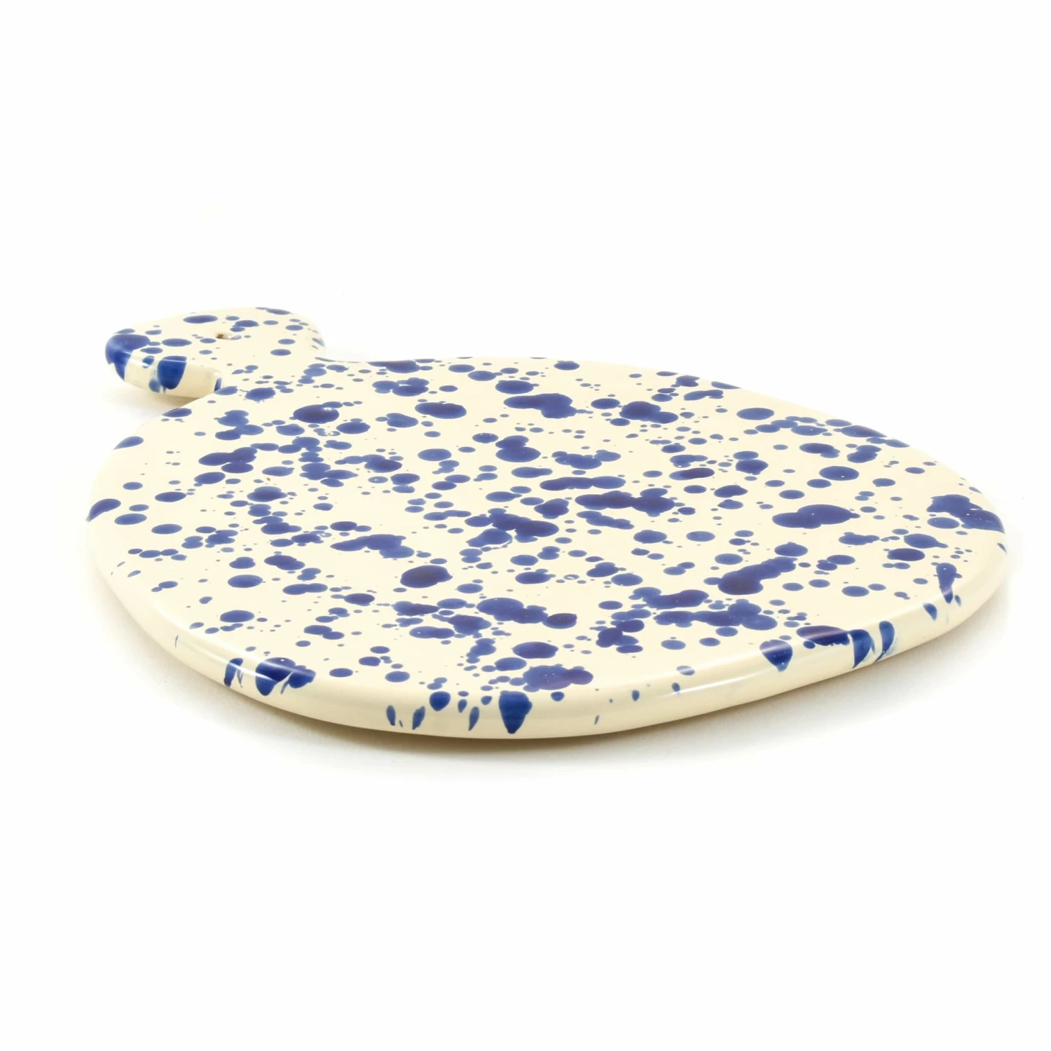 The off-white ceramic platter is decorated with splashes of blue, giving an artist’s palette vibe to this piece of crockery.Â