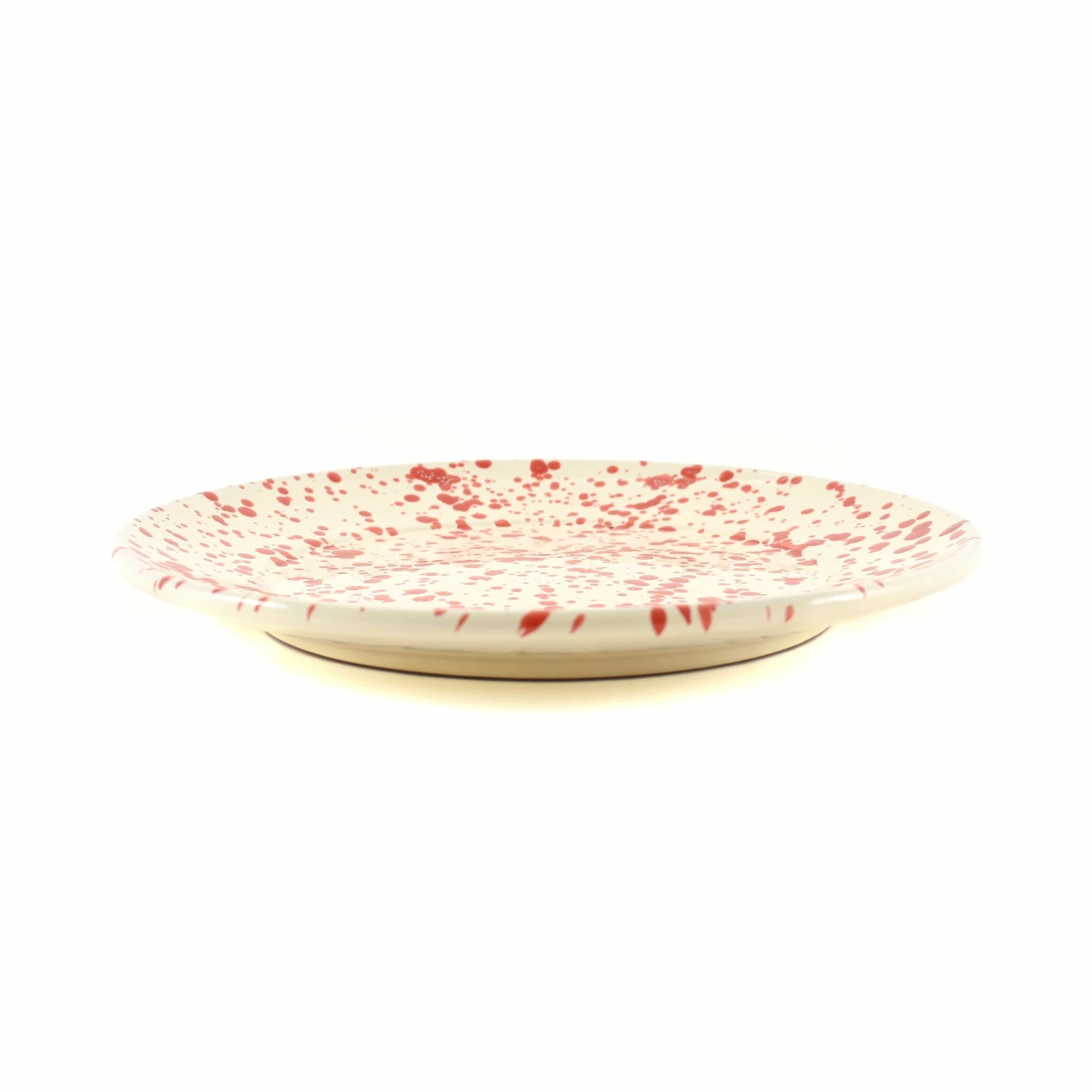 Use the Puglia red splatter dinner plate to present spaghetti carbonara, cacio e pepe and rich beef ragus. Handmade in Italy, this off-white dinner plate has a vibrant red splatter design inspired by the sea.
