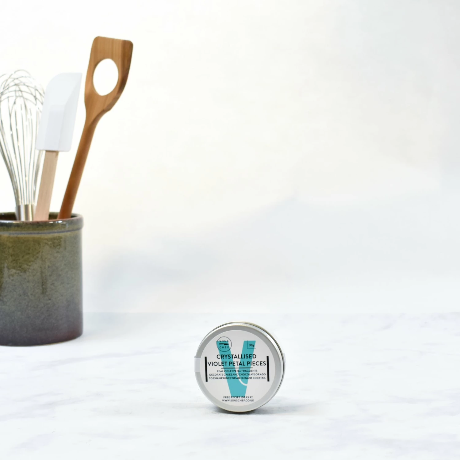 Crystallised violet petals are the perfect finishing touch to stunning British baking. The intense violet scent conjures up images of days gone by, with afternoon teas, and dainty violet cream chocolates. The crystallised petals can be nibbled on as they are, used to decorate cakes, or to dot an individual petal on top of a dark chocolate.